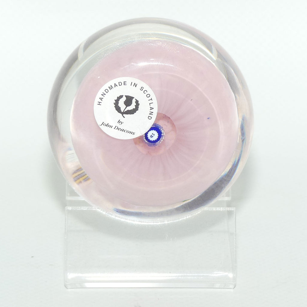 Weight contains 2 John Deacons signature Scotch Thistle canes within the pattern, and a JD initials Blue Star cane underneath, together with Handmade in Scotland by John Deacons adhesive label to base
