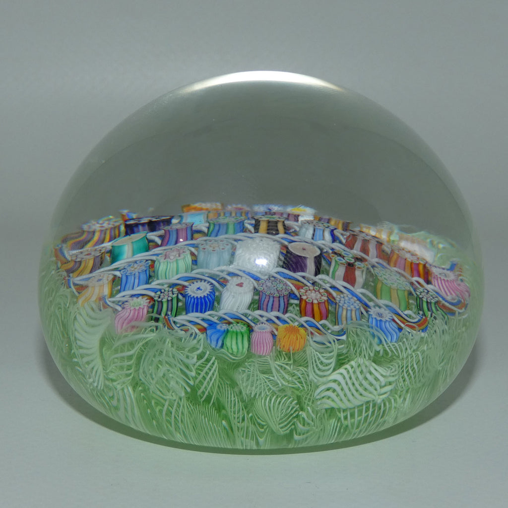 Contains John Deacons "signature" Scotch Thistle Cane within pattern of the weight, and JD Blue Star initial cane on underside of the weight