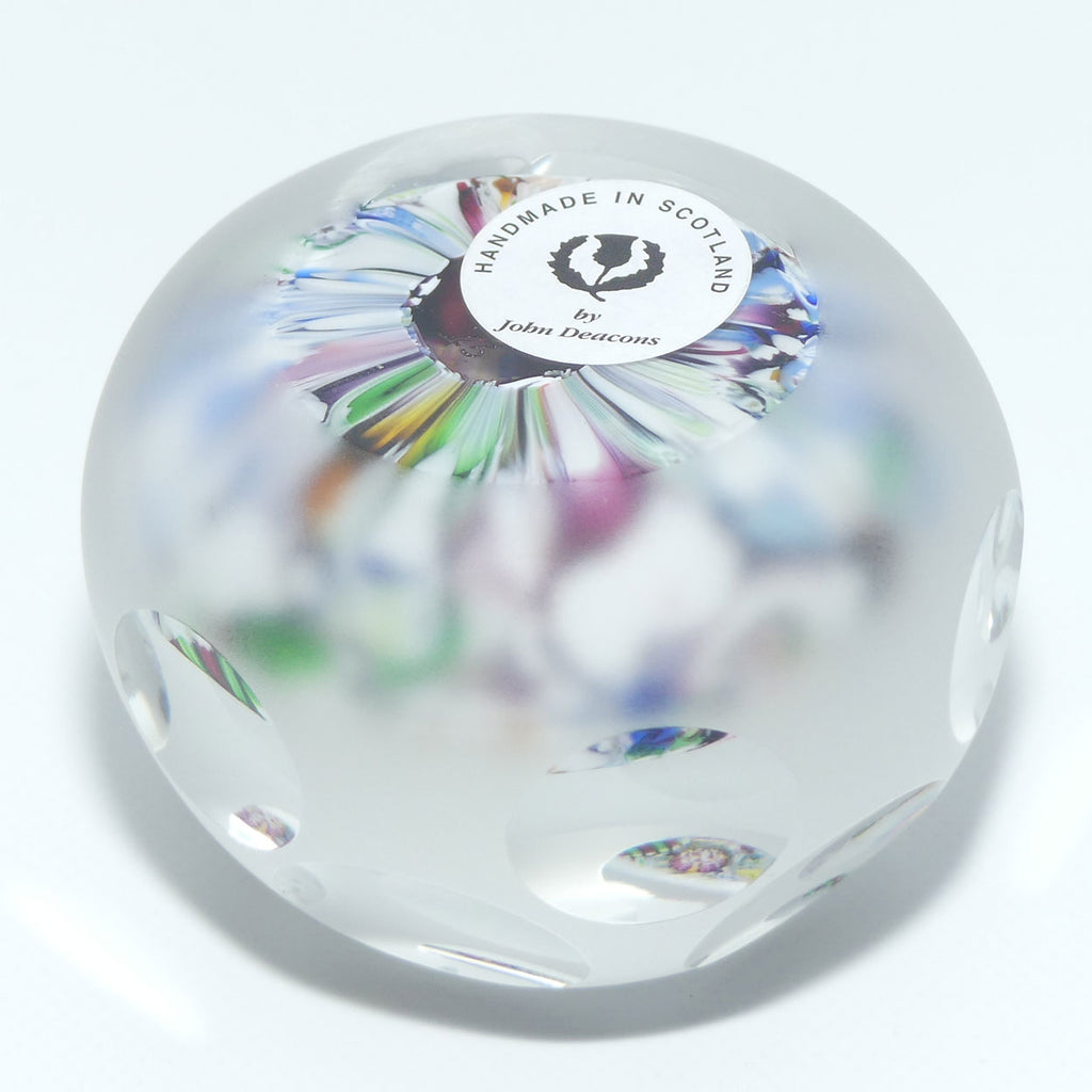Has John Deacons Scotch Thistle signature can and JHD 2018 date signature cane within the pattern of paperweight and adhesive label to base