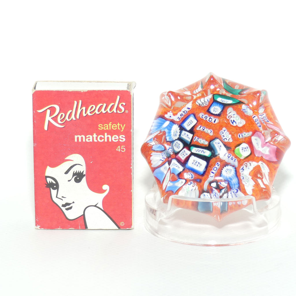 Has numerous JHD date canes within the weight - will you find a date in there that matches a significant life event [the chances are good!]? Handmade in Scotland by John Deacons adhesive label to base