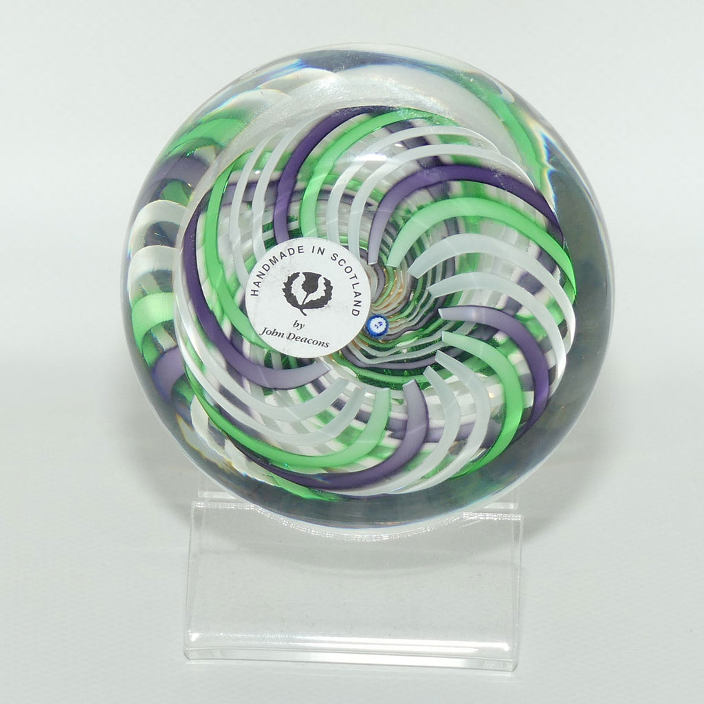 Has JD initials in Blue Star cane on underside of weight, together with John Deacons Scotland adhesive label to base