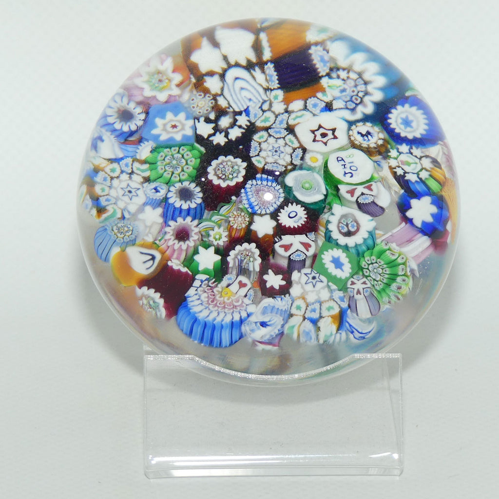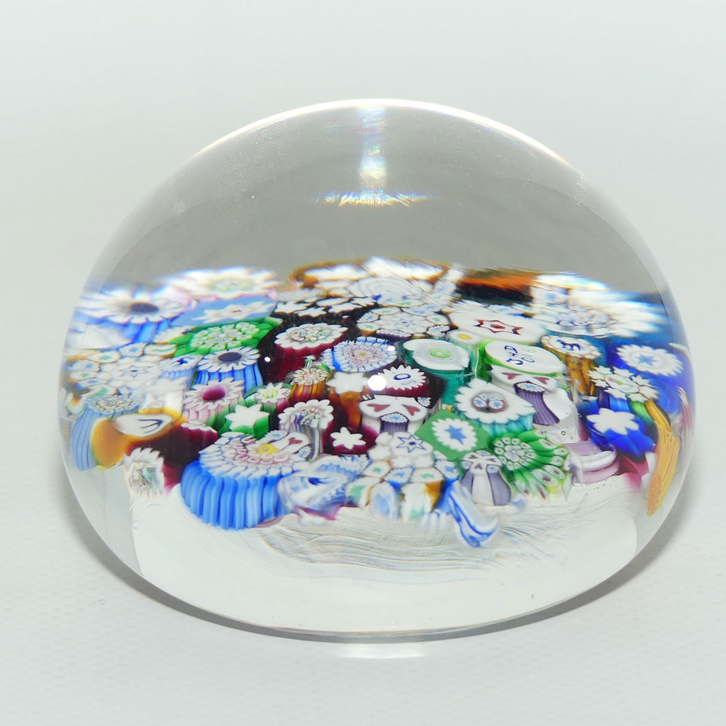 These weights are a triumph of the paperweight makers skills, the End of Day design appears to "float" within the clear weight (without the customary coloured cushion for the design to rest on)