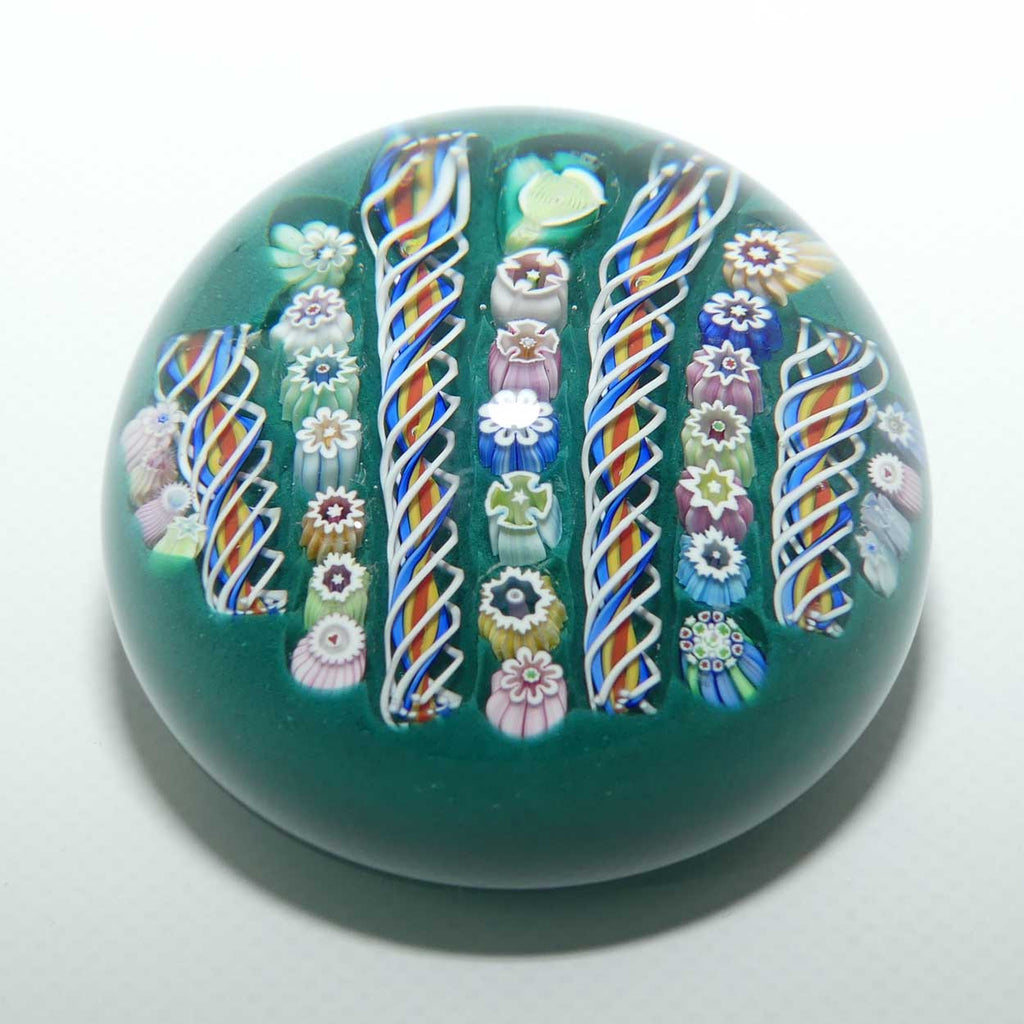 Has John Deacons Scotland Scotch Thistle signature cane within the pattern of the weight, and HANDMADE IN SCOTLAND by John Deacons adhesive label to base