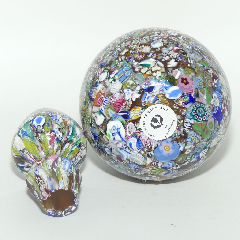 Collectors please note: The surface of these paperweight perfume bottles is not perfectly smooth - they are more like an orange skin with little dips and bumps - this is done intentionally as part of a handmade glass item (where every example is unique) to deliver the best example of the pattern (why polish it smooth if you lose the pattern effect). For the same reason they aren't always perfectly "square up and down" and the stoppers can wobble slightly - again they are a handmade glass item