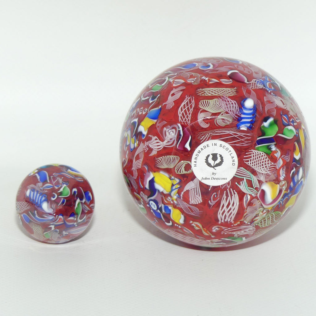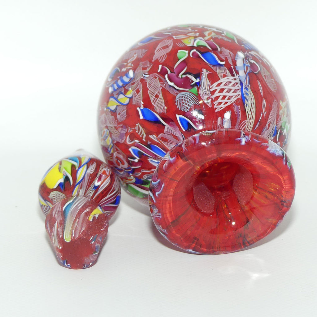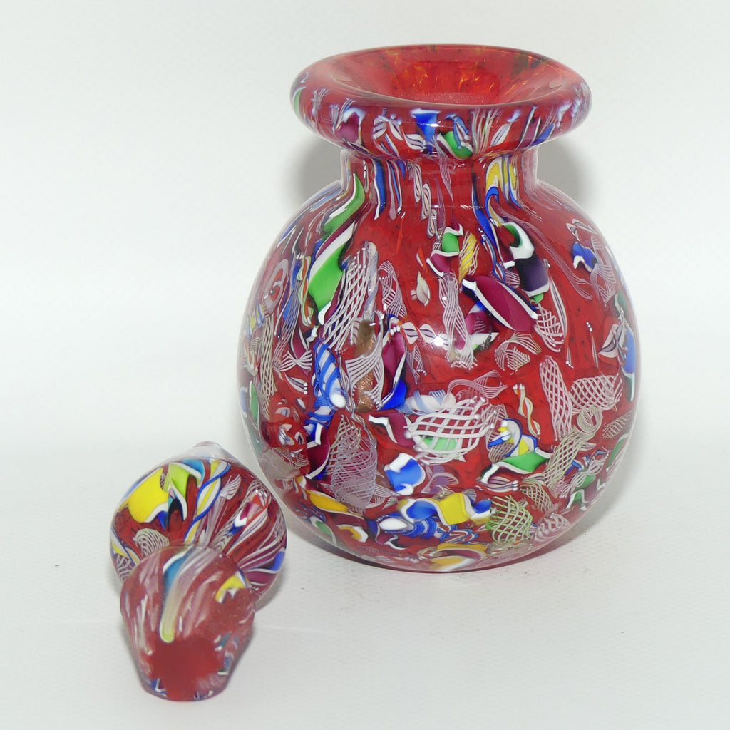 Collectors please note: The surface of these paperweight perfume bottles is not perfectly smooth - they are more like an orange skin with little dips and bumps - this is done intentionally as part of a handmade glass item (where every example is unique) to deliver the best example of the pattern (why polish it smooth if you lose the pattern effect). For the same reason they aren't always perfectly "square up and down" and the stoppers can wobble slightly - again they are a handmade glass item