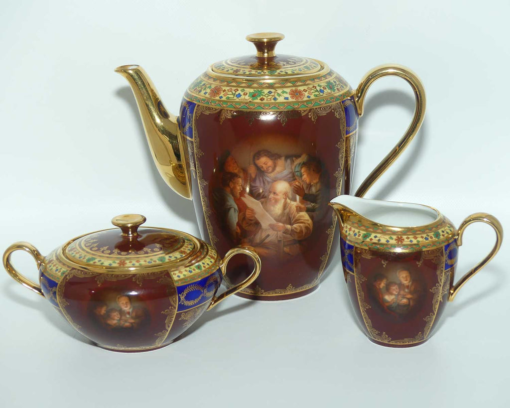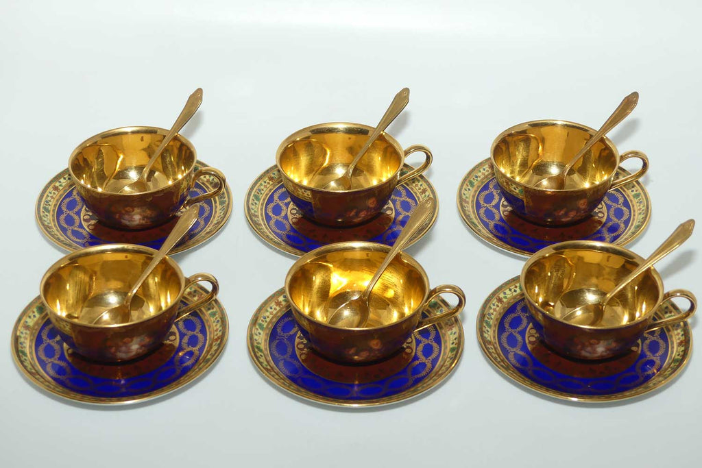Josef Kuba Karlsbad Czechoslovakia superb gilt 15 piece porcelain coffee set with Rembrandt style images and superb gilding