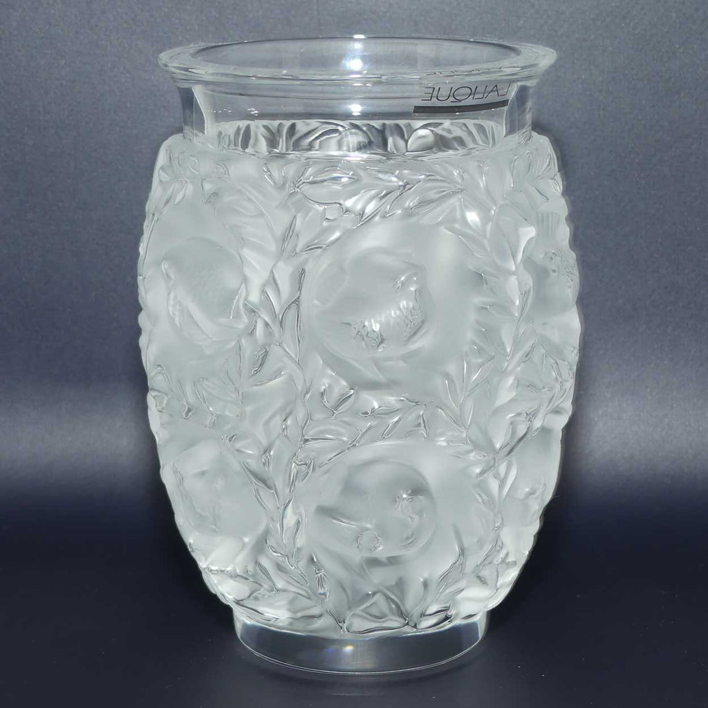 Designed by Rene Lalique in 1939 and borne from a from a naturalist inspiration - the Bagatelle vase is an emblematic Lalique piece and best seller. Set in clear and frosted crystal the vase became a classic of the collection combining fauna and flora themes. This vase takes us to a dreamlike state of nature, answering a need for authenticity and wellbeing.