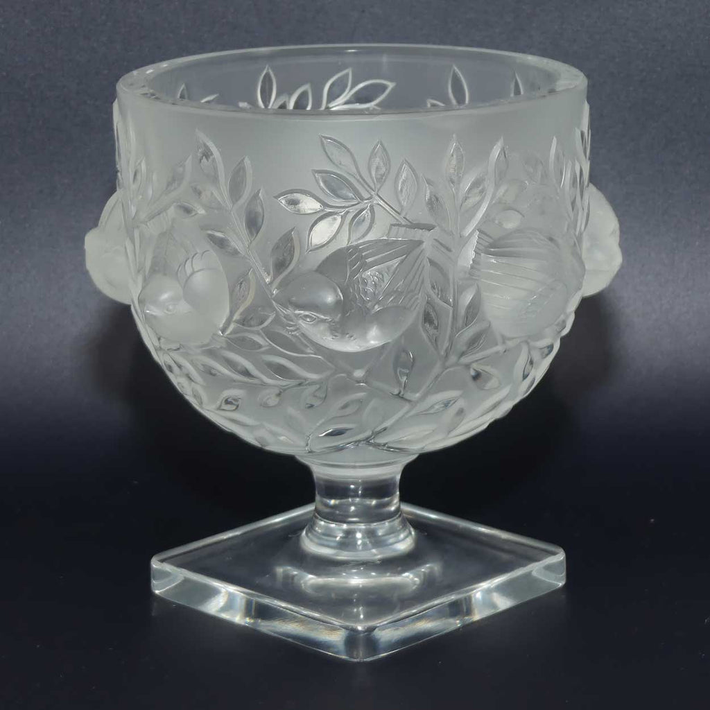 Created in 1961, by Marc Lalique, this vase pays tribute to two of the most dearest themes to Rene Lalique: the Fauna and Flora. Nestled among foliage, sparrows carved in relief adorn this satin finish clear crystal. This vase takes us to a dreamlike state of nature, answering a need for authenticity and wellbeing.