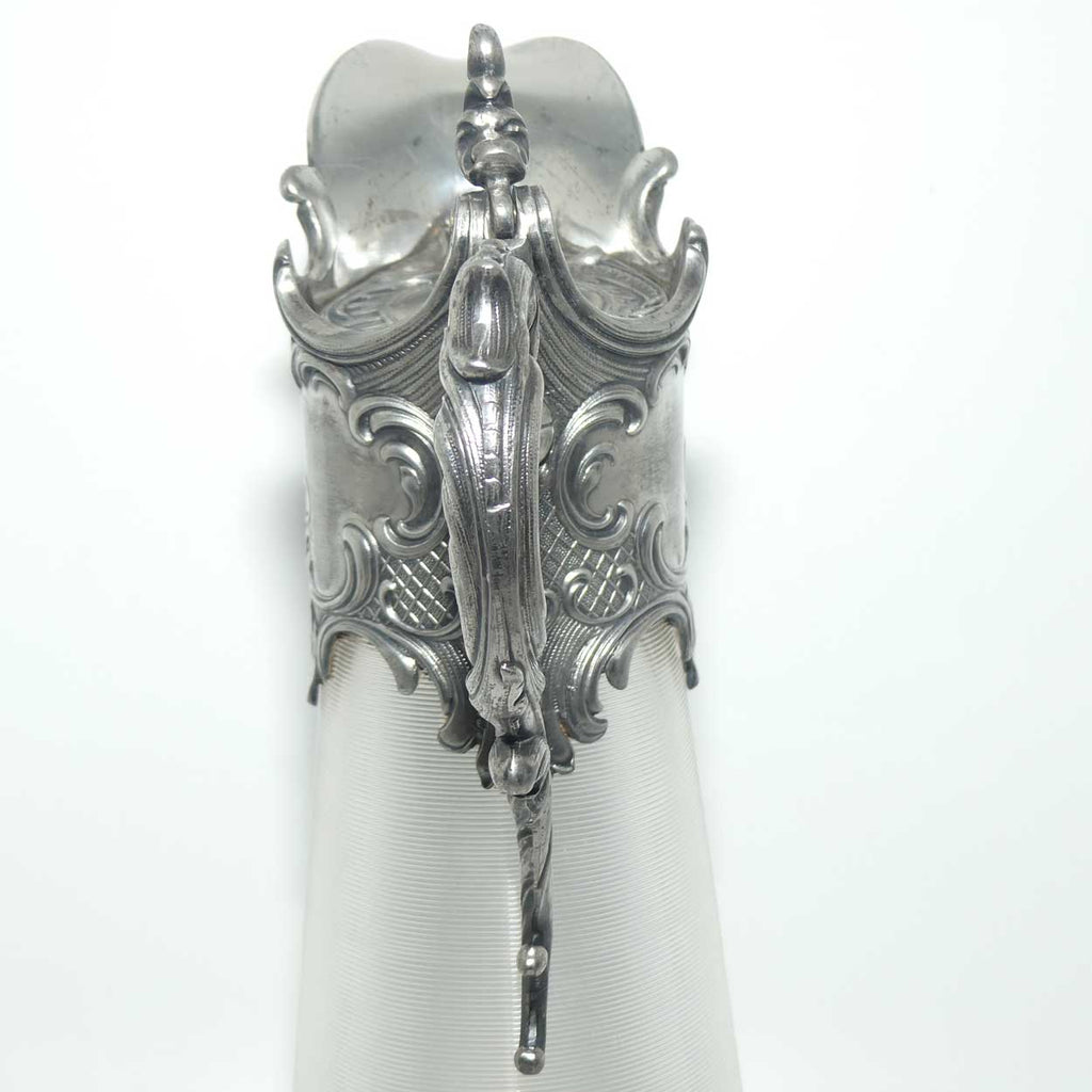 Late Victorian Brittania metal mounted threaded glass claret jug