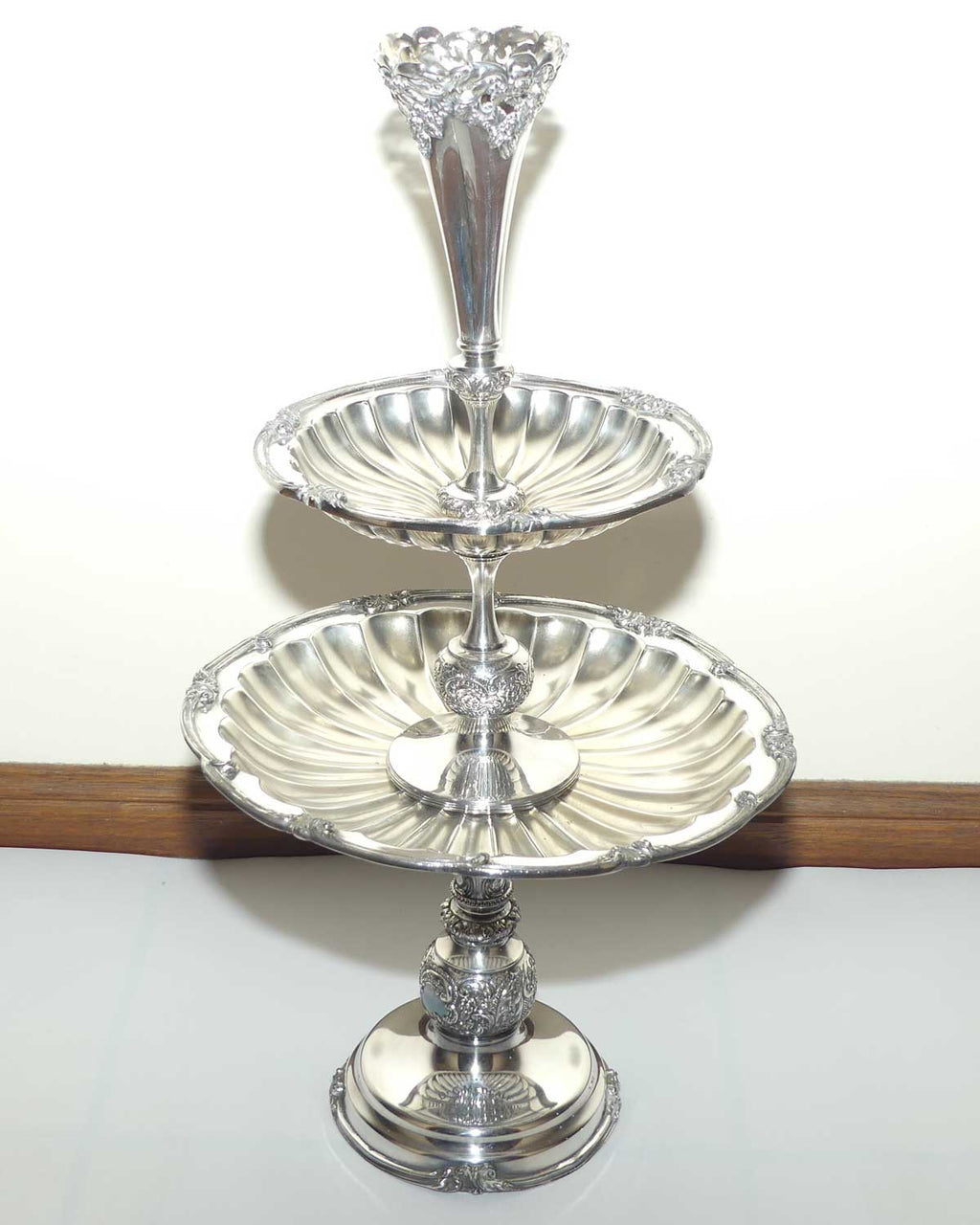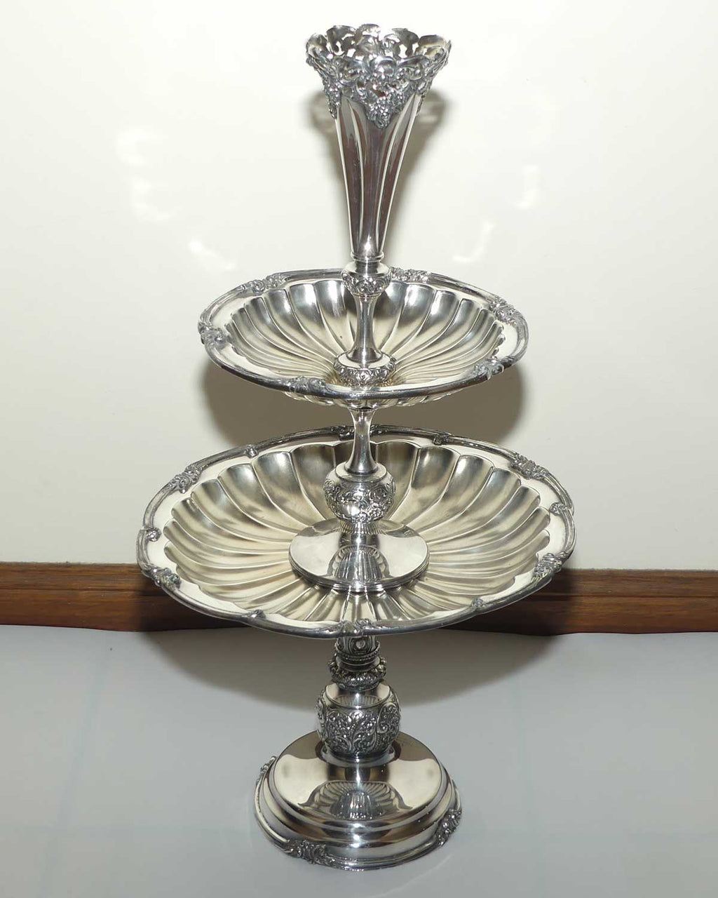 late Victorian era Wilcox Meriden USA Silver plated 2 tier Epergne centrepiece