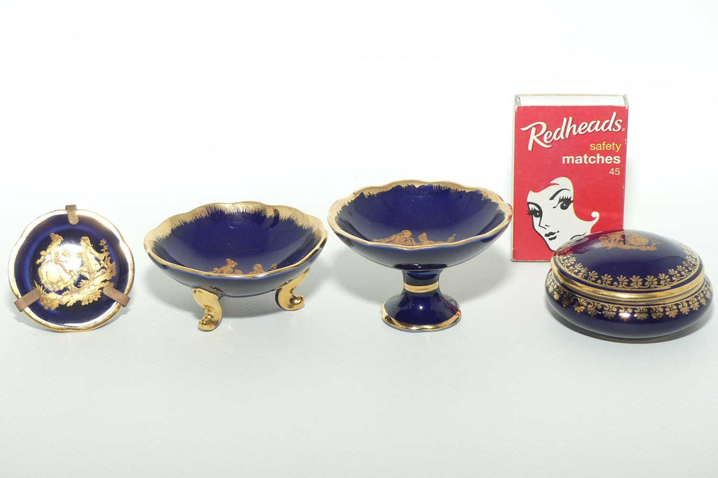 4 similar design items comprising a comport, tri footed bowl, miniature plate and trinket box - perfect for building a collection