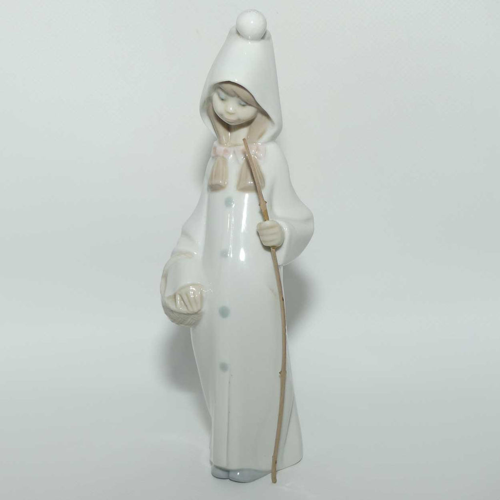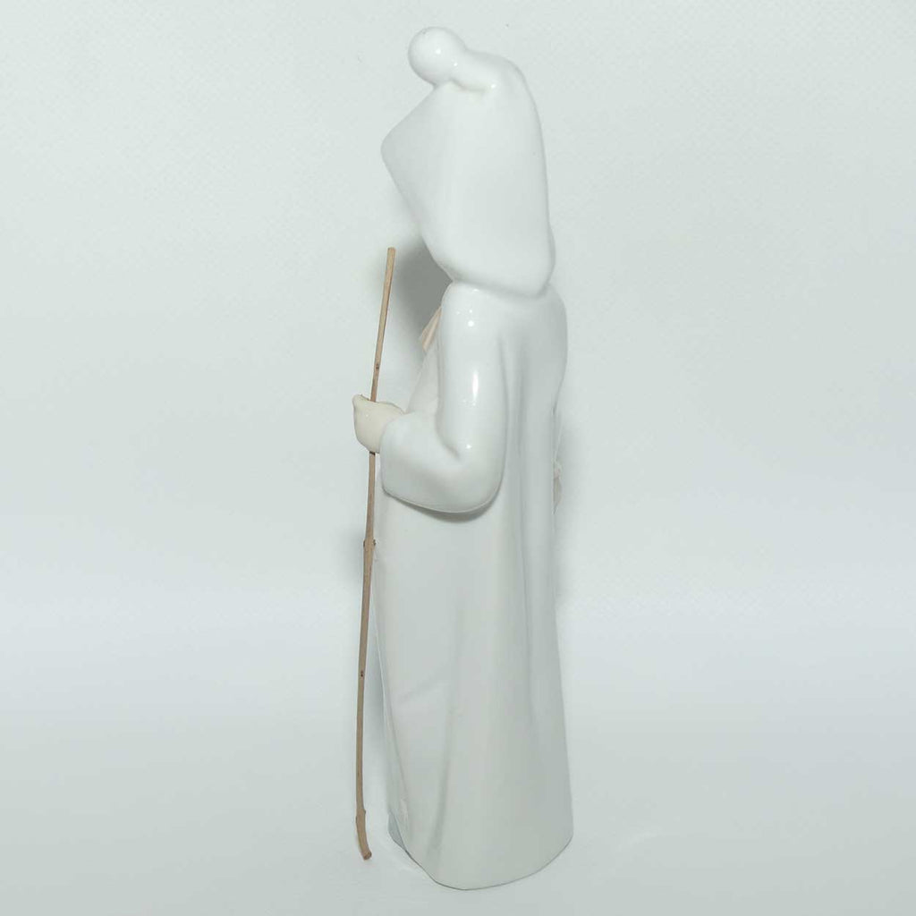 The figure by design has a simulated old style bamboo [wooden] shepherds style pole