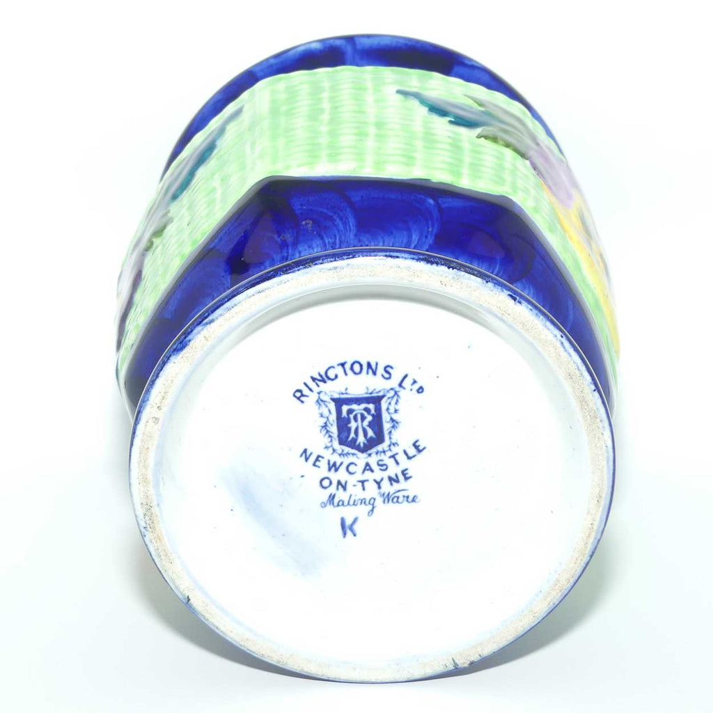 Historically Ringtons Tea buyers were required to collect coupons in the tea, after collecting a certain amount, they could purchase one of these Ringtons Tea branded items | A striking display item with the colourful Pansy flowers decorated against the rich blue ground
