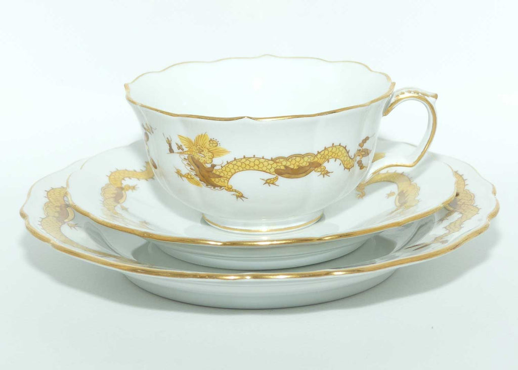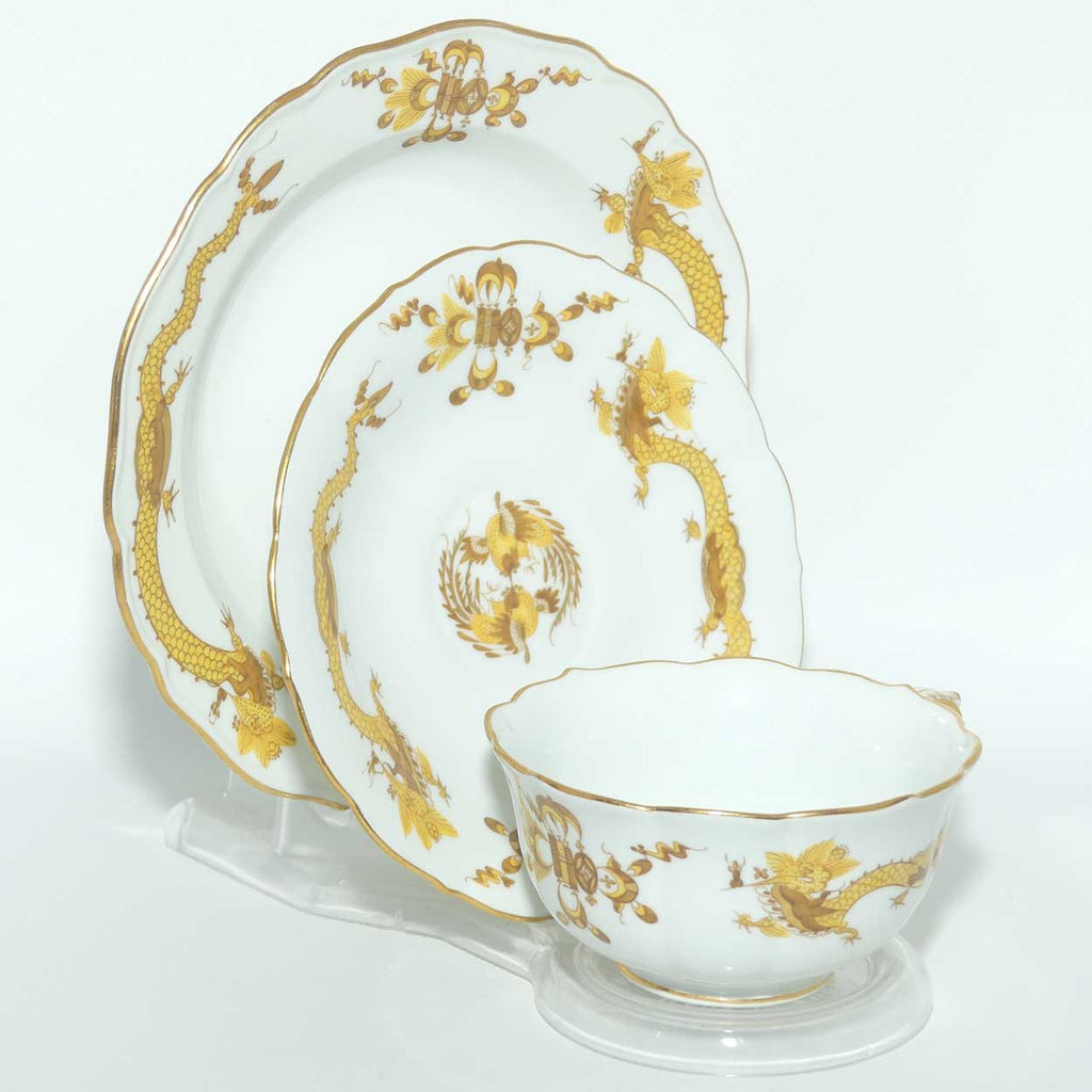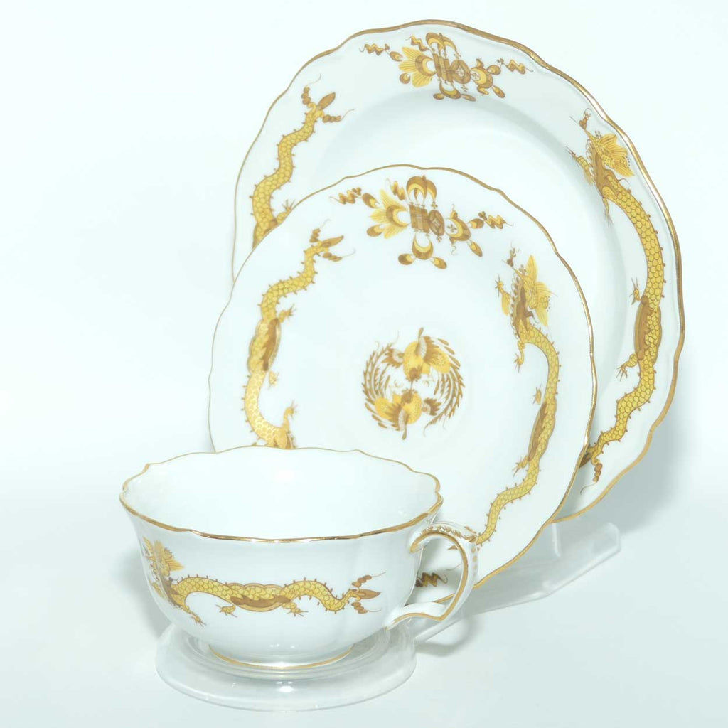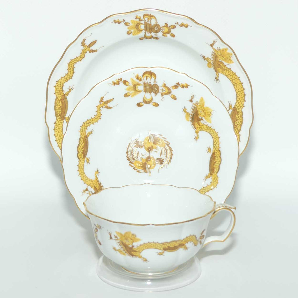 Meissen Yellow Dragon tea trio trimmed with gilt