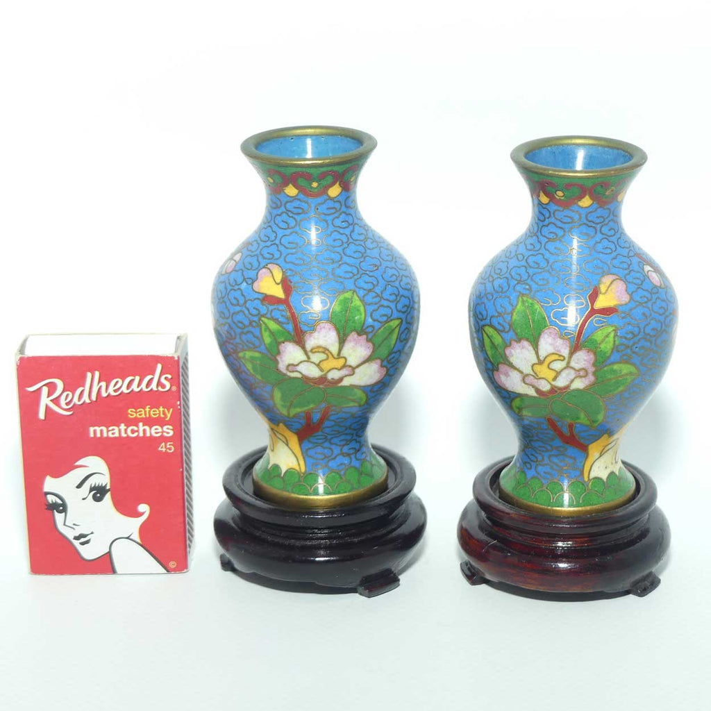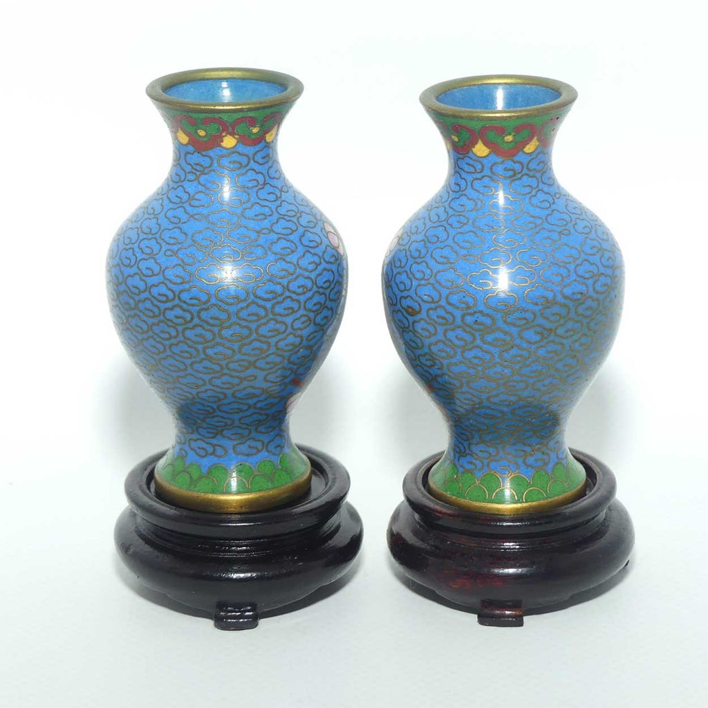 Mid Century Cloisonne pair of miniature Vases on Stands