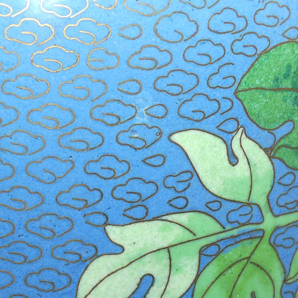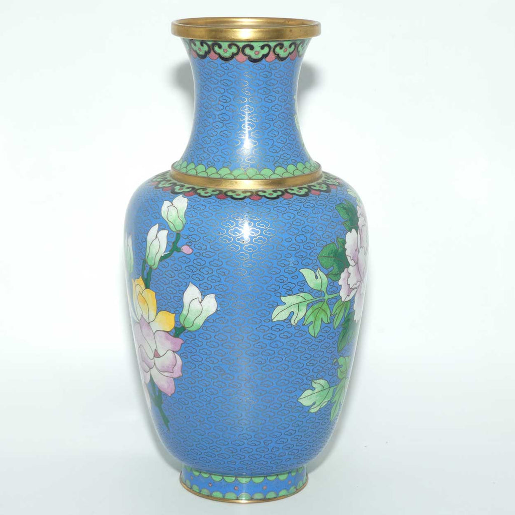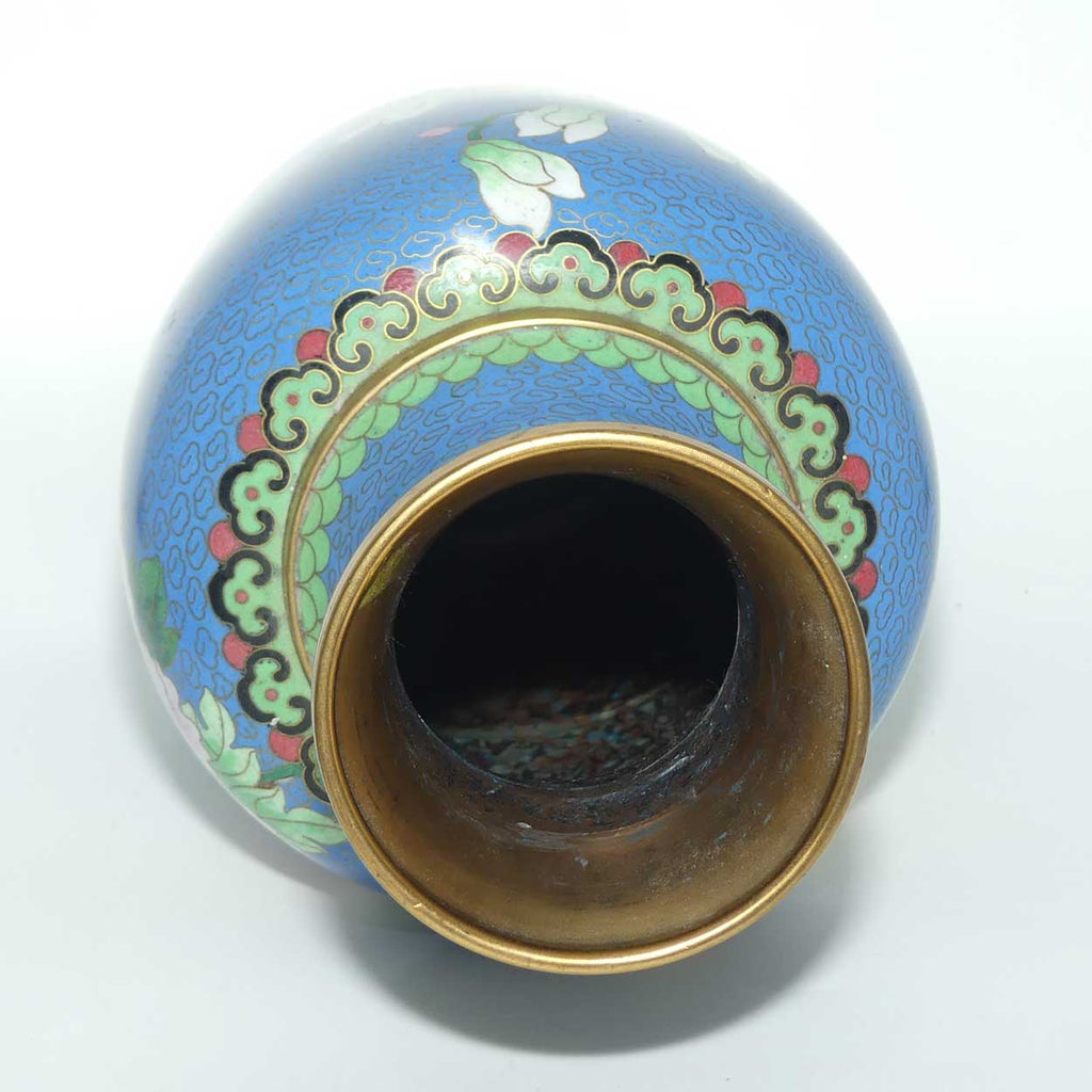 Mid Century Cloisonne vase | Blue Body | Flowers and Butterfly