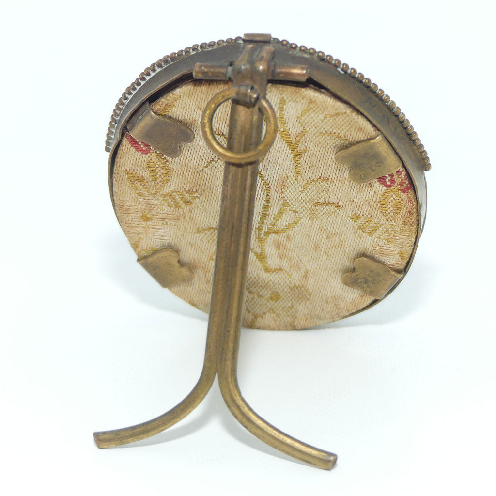 We believe that the miniature portrait with the lady & the dove is Mrs. Mary Nesbitt 1742-1825. The signature is of (Sir) J. Reynolds. The original of this piece is in the Wallace collection but Joshua Reynolds wasn’t known to do miniature portraits. Most likely, the piece was done as a [tribute] to Reynolds work by either a student or done by a similar artist as it’s well done.