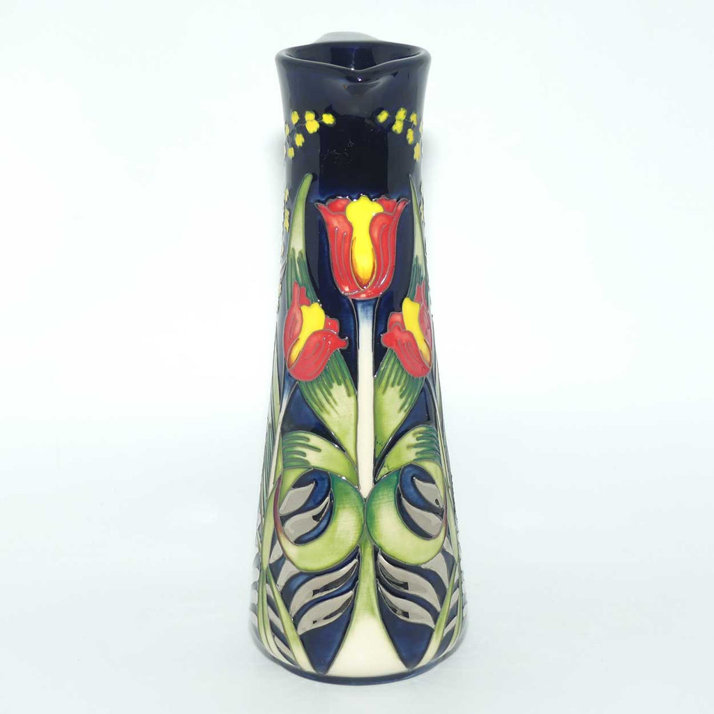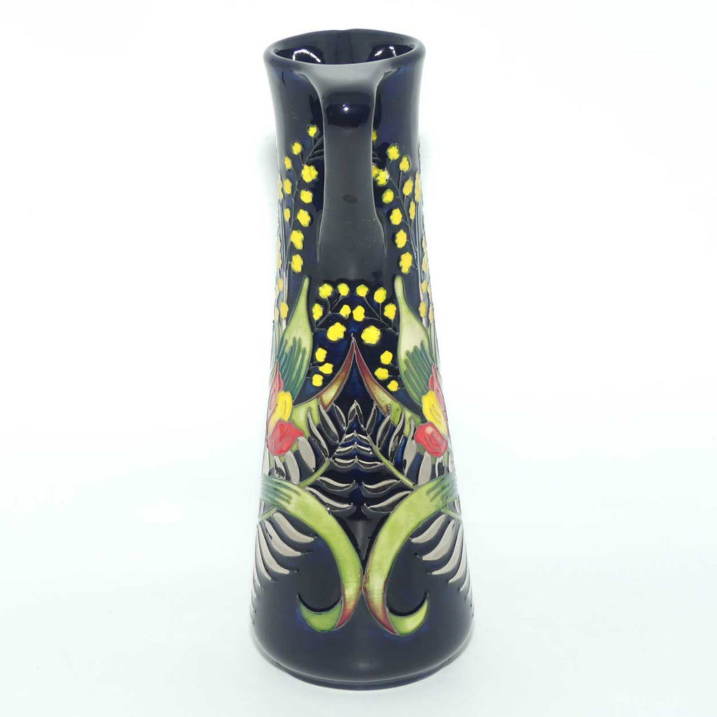 The ANZAC spirit or ANZAC legend is a motto upheld by both Australia and New Zealand. It is a specific reference to the shared characteristics of their soldiers, the qualities of whom were first and most valiantly shown on the battlefield in World War I. Some of the qualities are endurance, courage, ingenuity, good humour and mateship. A direct illustration of these brave soldiers expressing their virtues during the hardships and toils of war would not necessarily translate into art all that well. Instead, Moorcroft designer Nicola Slaney offers what she knows to be meaningful, touching and expressive: flowers. ANZAC Legend combines delicate boughs of yellow wattle representing Australia, the platinum lustred silver ferns of New Zealand and a red tulip, adopted as Turkey's floral emblem. Nicola has tastefully wrapped all three floral emblems around the popular jug shape and backed her design with a deep, sombre Moorcroft blue.