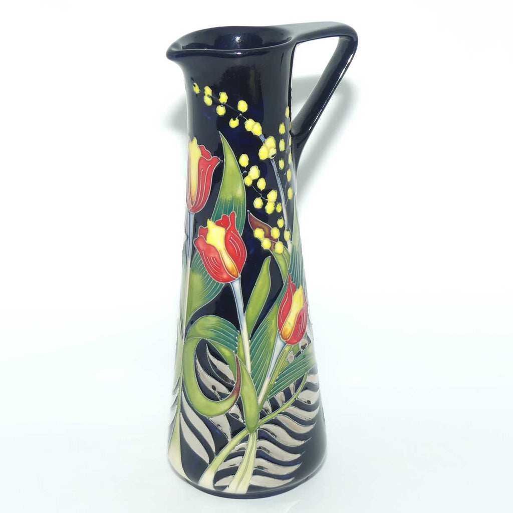 The ANZAC spirit or ANZAC legend is a motto upheld by both Australia and New Zealand. It is a specific reference to the shared characteristics of their soldiers, the qualities of whom were first and most valiantly shown on the battlefield in World War I. Some of the qualities are endurance, courage, ingenuity, good humour and mateship. A direct illustration of these brave soldiers expressing their virtues during the hardships and toils of war would not necessarily translate into art all that well. Instead, Moorcroft designer Nicola Slaney offers what she knows to be meaningful, touching and expressive: flowers. ANZAC Legend combines delicate boughs of yellow wattle representing Australia, the platinum lustred silver ferns of New Zealand and a red tulip, adopted as Turkey's floral emblem. Nicola has tastefully wrapped all three floral emblems around the popular jug shape and backed her design with a deep, sombre Moorcroft blue.