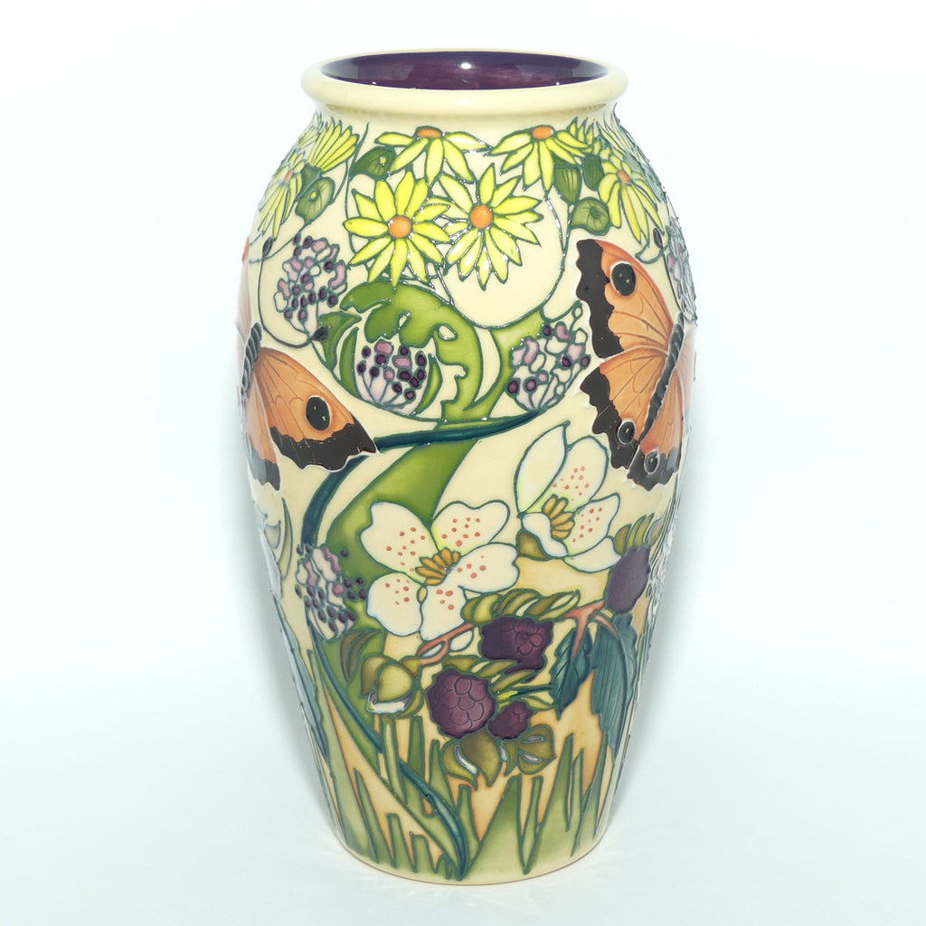 About Gatekepper Butterfly: Vicky Lovatt's choice in this design was a striking Gatekeeper butterfly with his orange body tipped with brown edges and black and white circles. Also known as the hedge brown, this butterfly is most commonly found in southern and eastern Britain and coastal areas of south and south-east Ireland. The Gatekeeper is a golden butterfly that provides a welcome sight in the middle of summer, when the adults start to emerge. This delicate butterfly spends much of its time basking with wings open in the hot summer sun and here in this design, it enjoys bright yellow Common Ragwort, soft clouds of Wild Marjoram, and delicately tubelined Bramble blossom and berries.