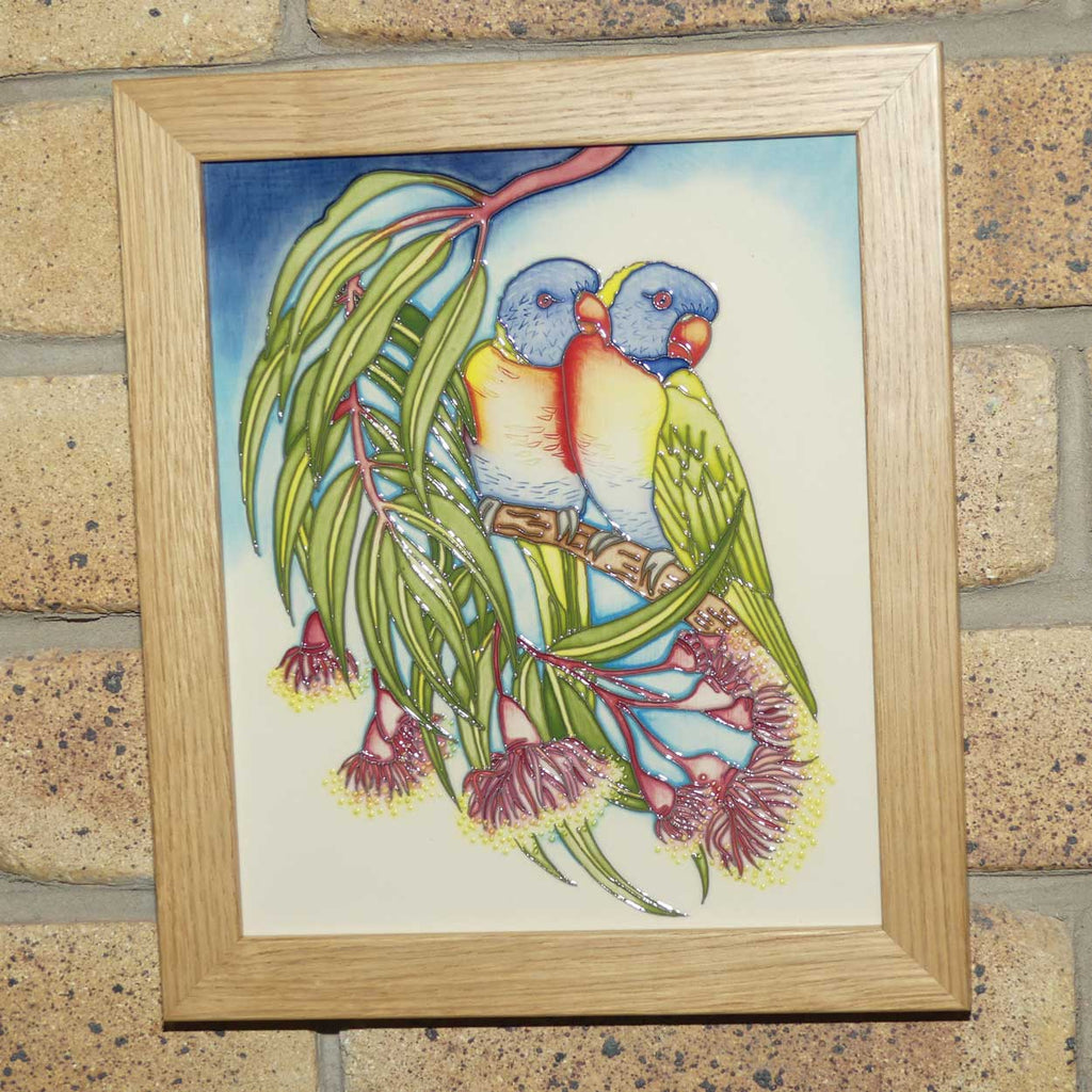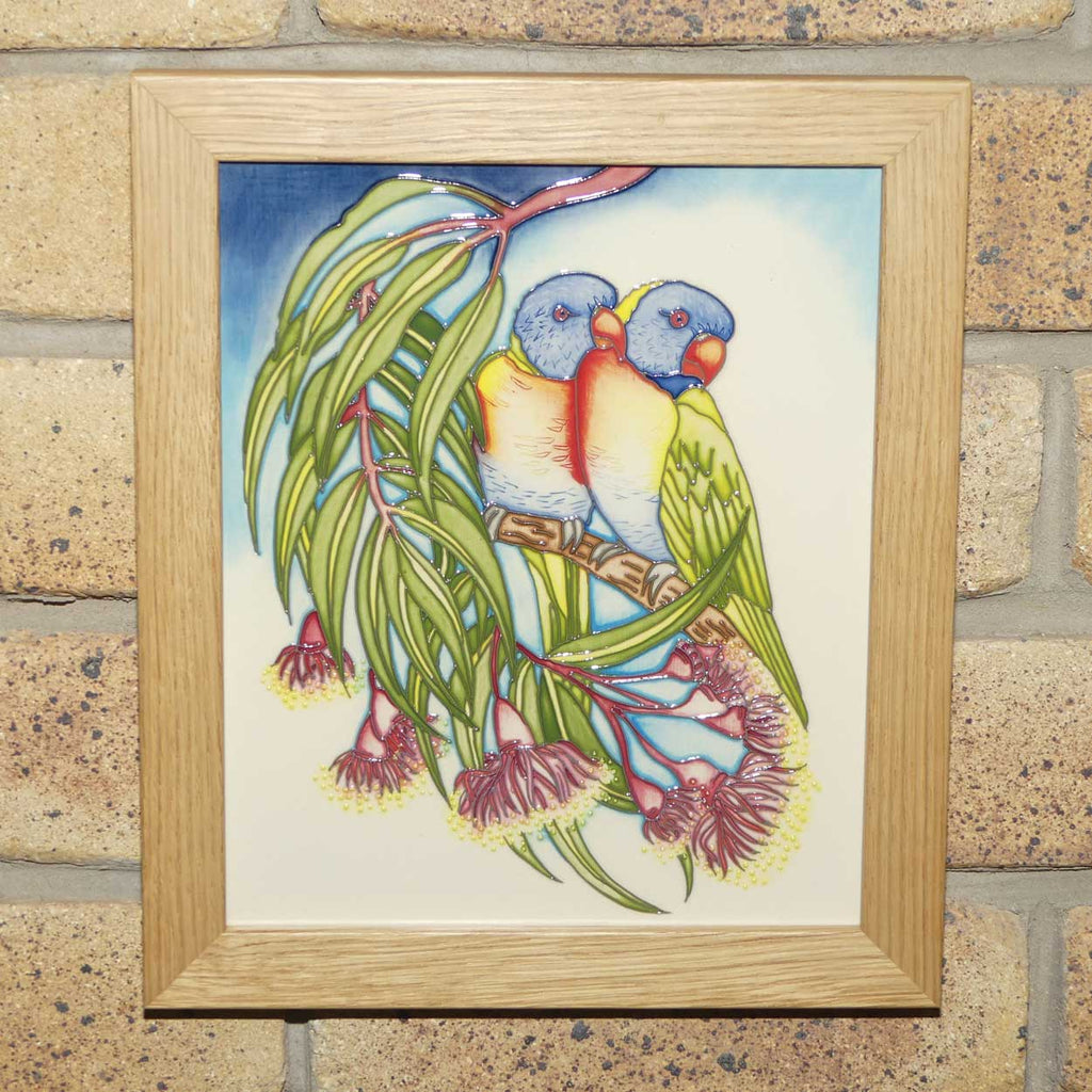 Nestled into each other, these loveable birds suggest a warm radiance and bring a welcome splash of bright rainbow colours to further enrich Moorcroft art.