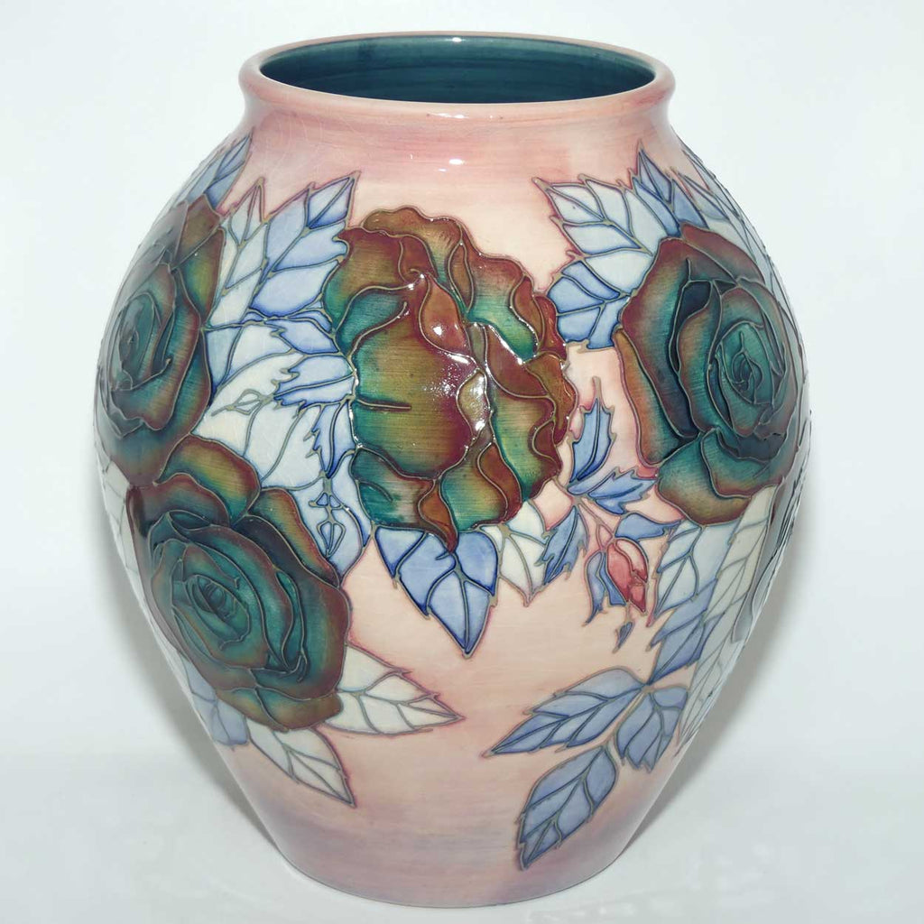 My understanding [confirmed at page197, Atterbury] is that this design was by Sally Tuffin and released during 1992 and each design was individually painted by Wendy Mason, in varying colour palettes. Signed to base by John Moorcroft and noted underglaze ST DES [Sally Tuffin Designer] and W PINXIT 5 -3 1992 No 6. My understanding is that this vase would be an almost "once off" colour variation.