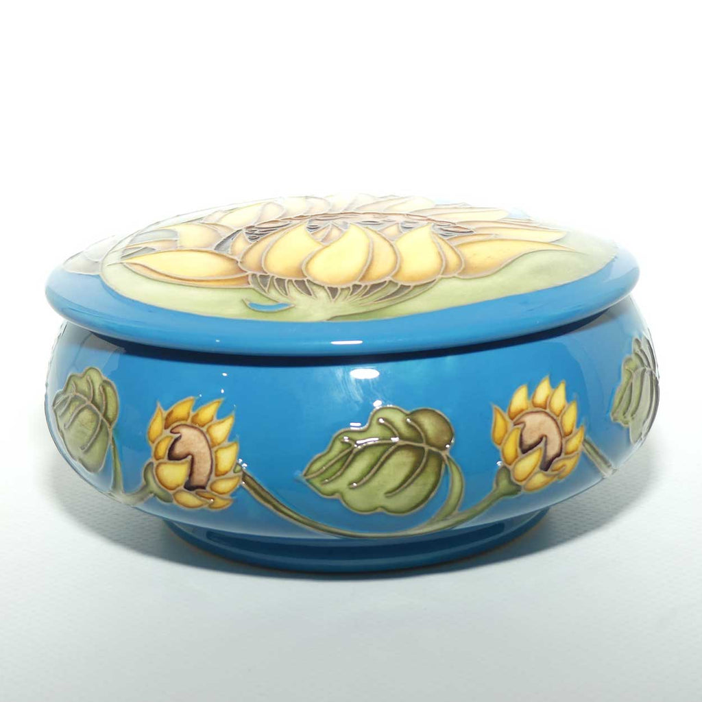 The lidded box was designed as a numbered edition for Dougie Mac’s 40th ruby anniversary in 2013. To celebrate the milestone achievement of Dougie Mac reaching their golden 50th birthday this Valentine’s Day, Moorcroft are re-releasing the last few pieces of Sunburst.