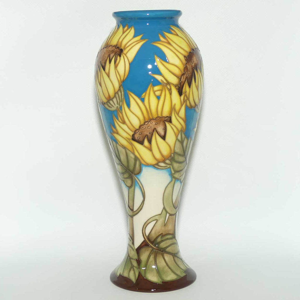 It is a rare occasion which enables you to make a generous gesture to a wonderful charity and secure a fine piece of Moorcroft for yourself at one and the same time. With pride, and considerable happiness, Moorcroft designed Sunburst to raise funds for Douglas Macmillan Hospice (known locally as Dougie Mac) as the sunflower is the floral emblem of the charity. Designer Vicky Lovatt’s flowers are warm and colourful and have a sense of surging movement as their golden-yellow petals reach up to the heavens, just as humans would do with their arms outstretched upwards to sun-filled skies above.