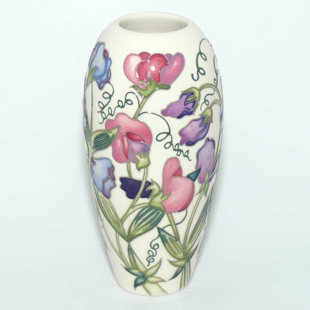 With their delightful wisps and tendrils, sweet peas have made a lovely floral subject at Moorcroft for decades and so their reoccurrence was inevitable. Nicola scattered a wild and unkempt cluster of the colourful annual flowers, with delicate tendrils tubelined in green, for the Moorcroft Club’s 30th anniversary in 2017. Its popularity was instant and could simply not be ignored. With connoisseurs eager for more, Sweetness made a very welcome re-appearance in 2018. Nicola has used a pure white background to her design and as a result her sweet peas appear bright, cheerful and tempting.