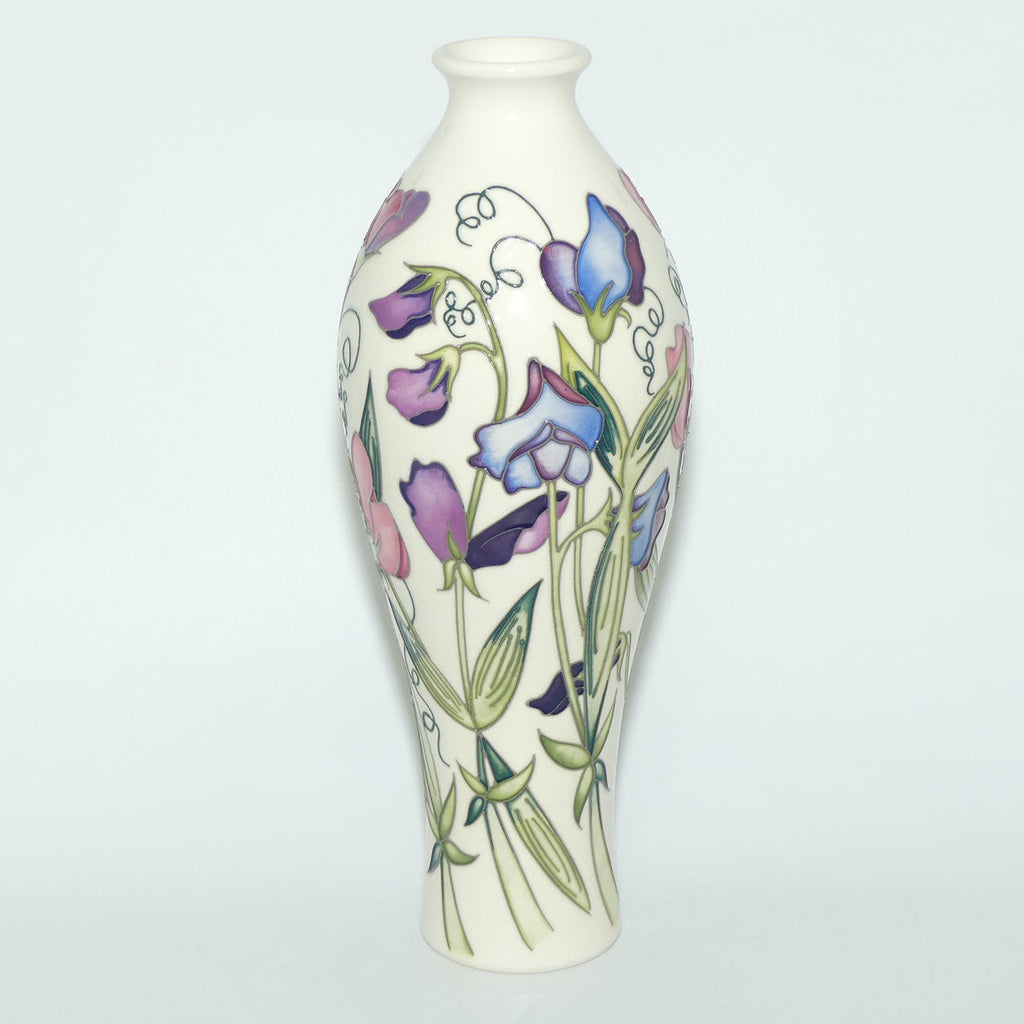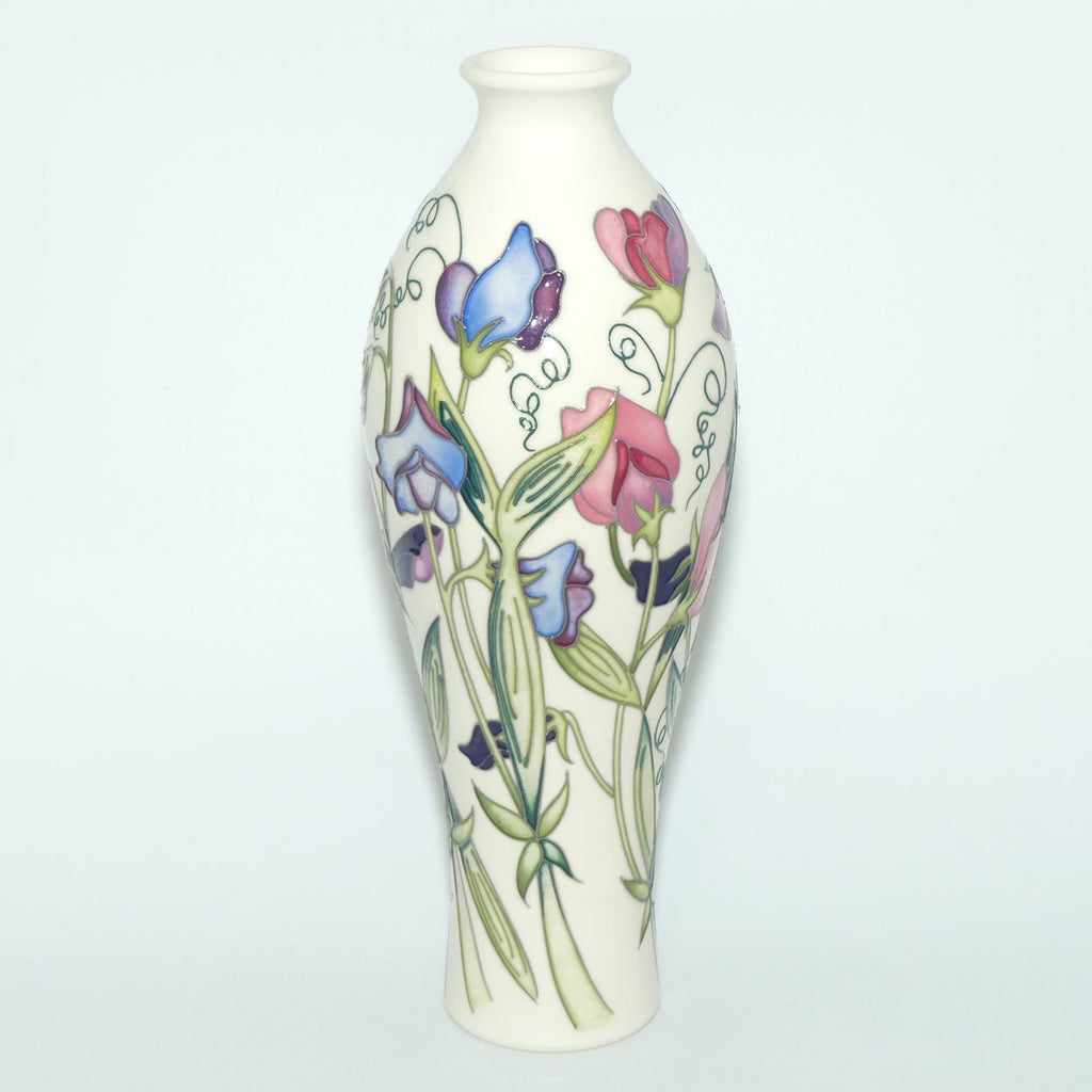 With their delightful wisps and tendrils, sweet peas have made a lovely floral subject at Moorcroft for decades and so their reoccurrence was inevitable. Nicola scattered a wild and unkempt cluster of the colourful annual flowers, with delicate tendrils tubelined in green, for the Moorcroft Club’s 30th anniversary in 2017. Its popularity was instant and could simply not be ignored. With connoisseurs eager for more, Sweetness made a very welcome re-appearance in 2018. Nicola has used a pure white background to her design and as a result her sweet peas appear bright, cheerful and tempting.