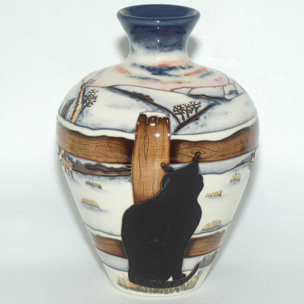 Anji’s fields are covered in snow: a winter sun spreads streaks of cold blue, amber and yellow across a distant village and rolling white hills. The air is cold, and the scream of a distant vixen shatters the silence. The designer’s black cat cares nothing for the foxes, the chill of the sky or the white snow. A wooden post and rail garden fence protects her sanctuary and her retreat. A fox is prowling past with more of its family slinking quietly across the snow in the distance. To the black cat, the fox is a mere object of curiosity, not fear. This is nature in the wild, drawn by an artist who is in control of her design and confident in her subject matter.