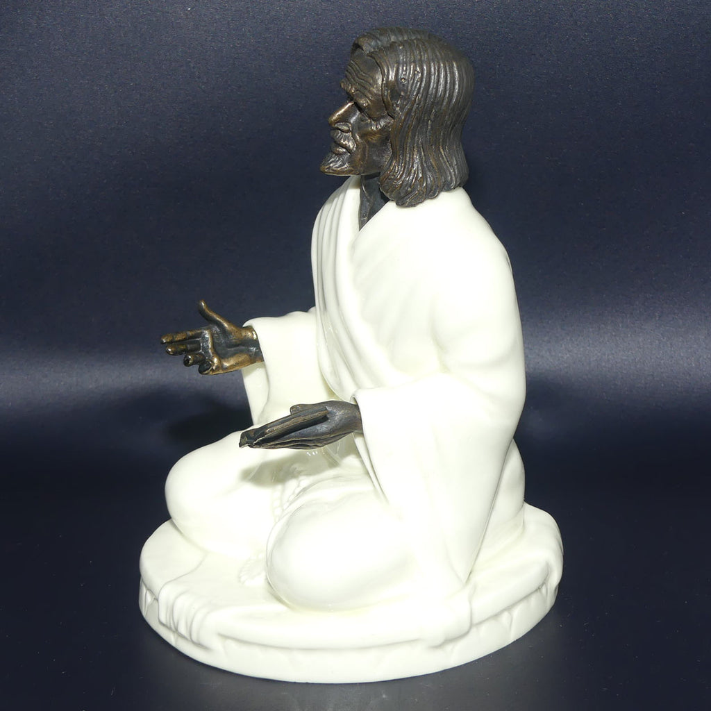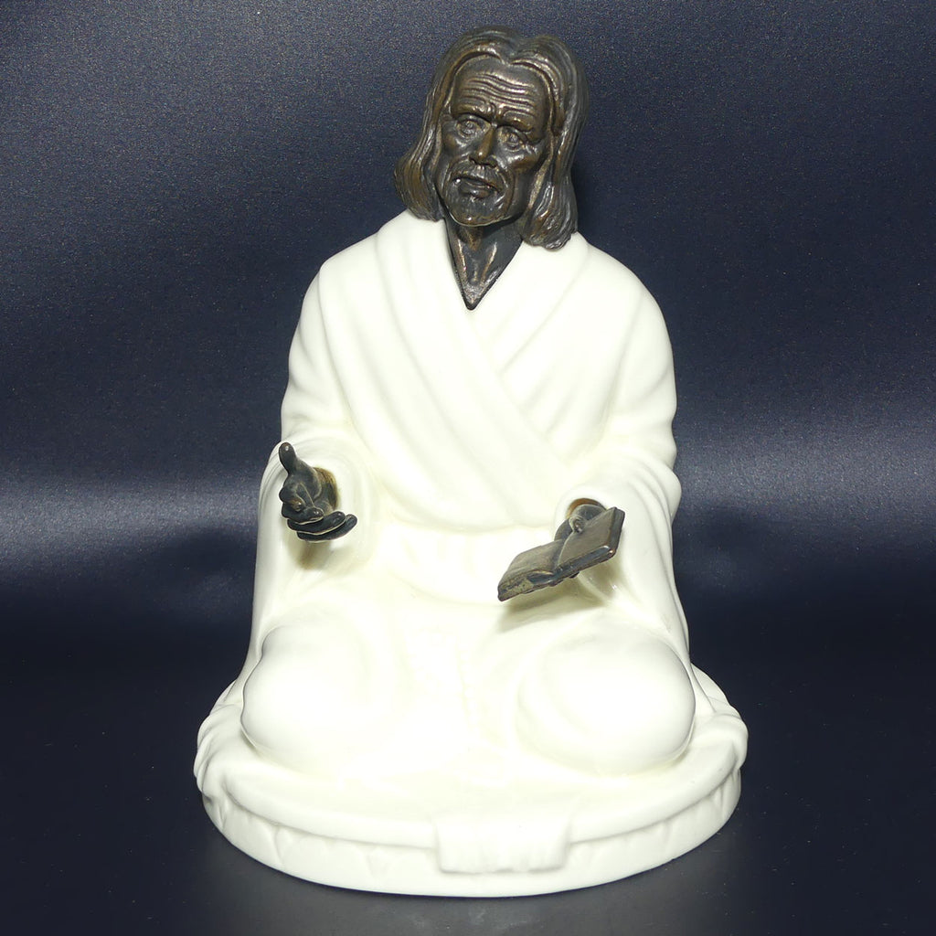 A very artistic and rarely seen design combination of Porcelain and Cold Cast Bronze [the head, the hands and the book he holds are all solid cold cast bronze]