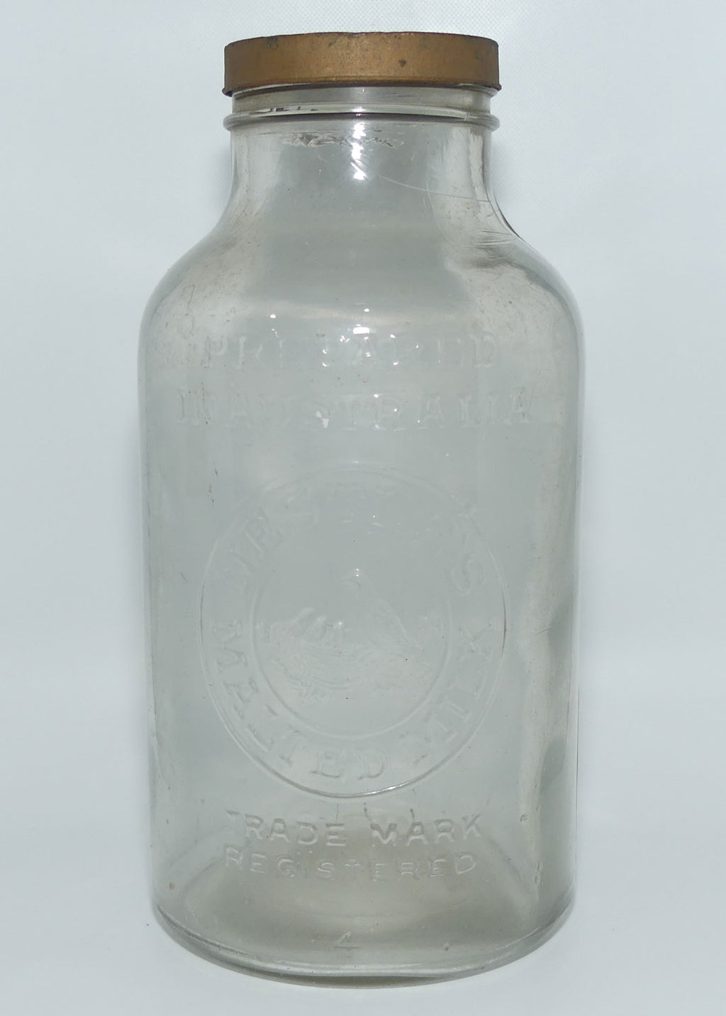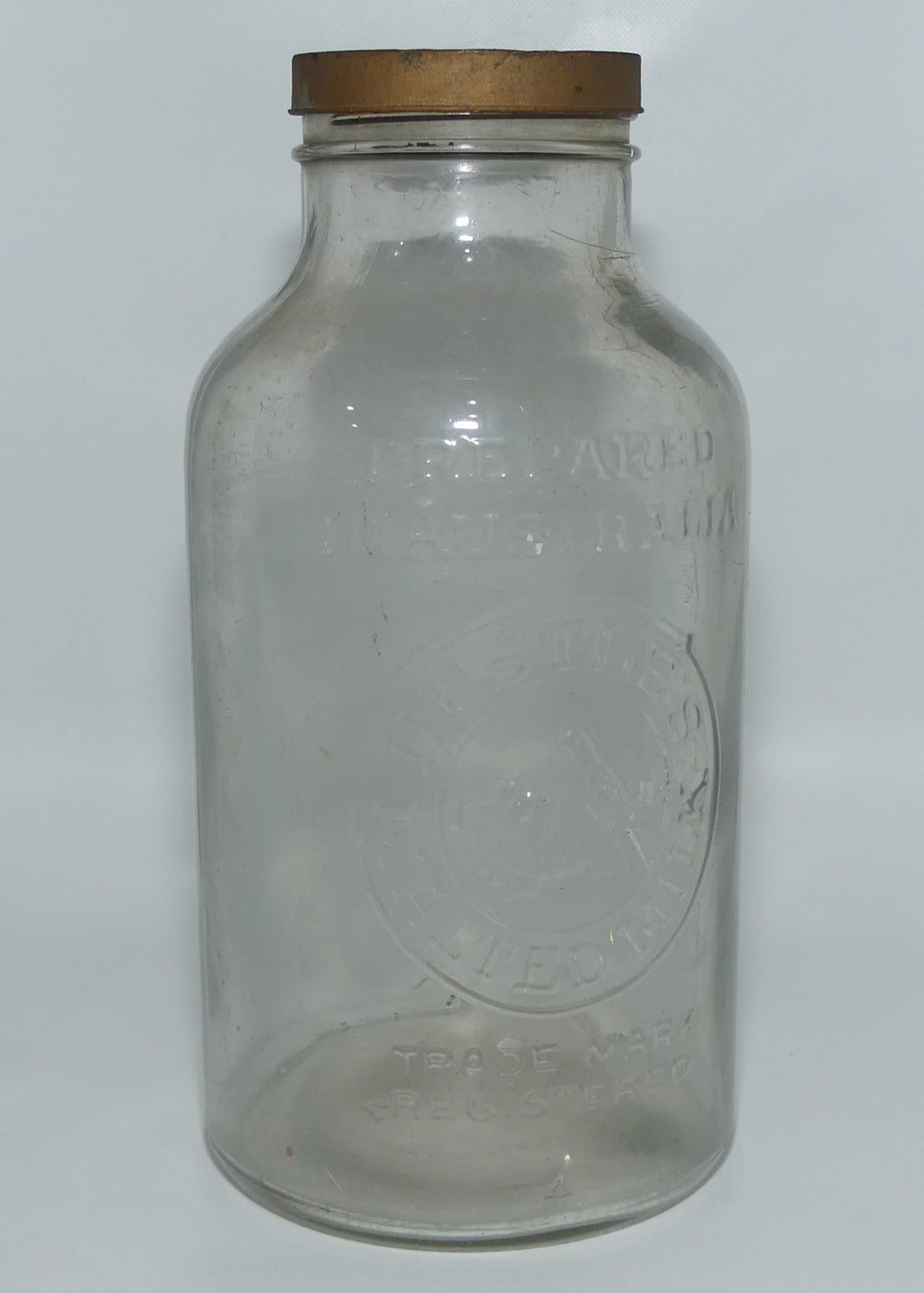 Has the following embossed text (top to bottom) PREPARED IN AUSTRALIA | NESTLE'S MALTED MILK [plus Feeding Bird logo] | TRADE MARK REGISTERED | A.G.M underneath