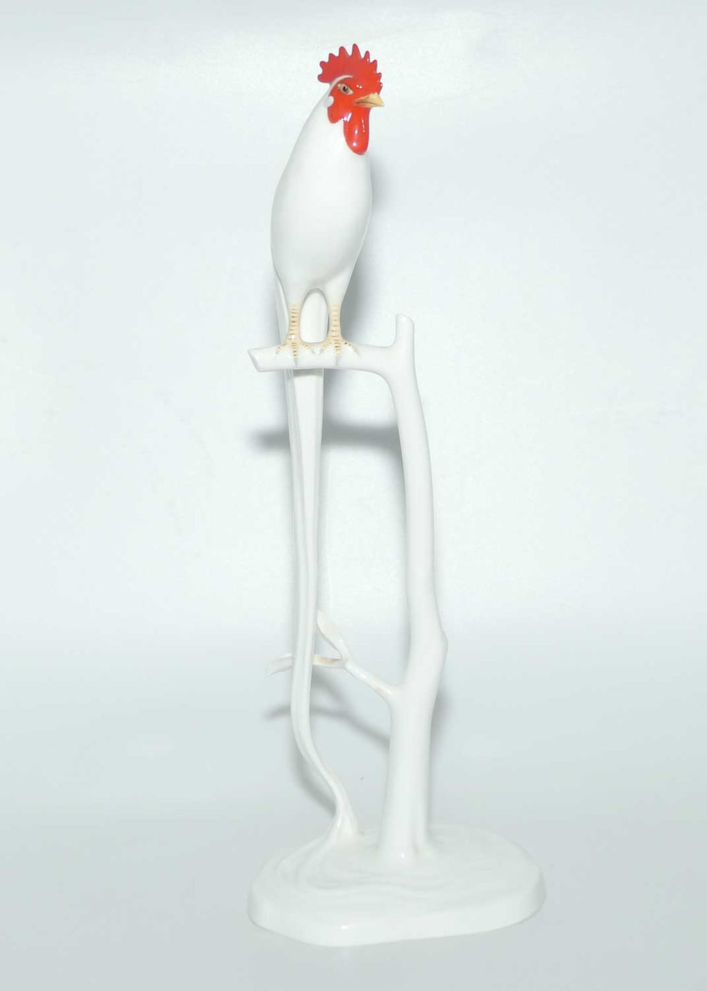 A superb figure by Noritake depicts the majestic Onagadori, a rare and revered long-tailed rooster native to Japan. It was bred in the seventeenth century in Kōchi Prefecture, on Shikoku island in southern Japan, and was designated a Japanese National Natural Treasure in 1952. Known for its extraordinarily long plumage and graceful posture, the Onagadori symbolizes dignity, beauty, and endurance.
