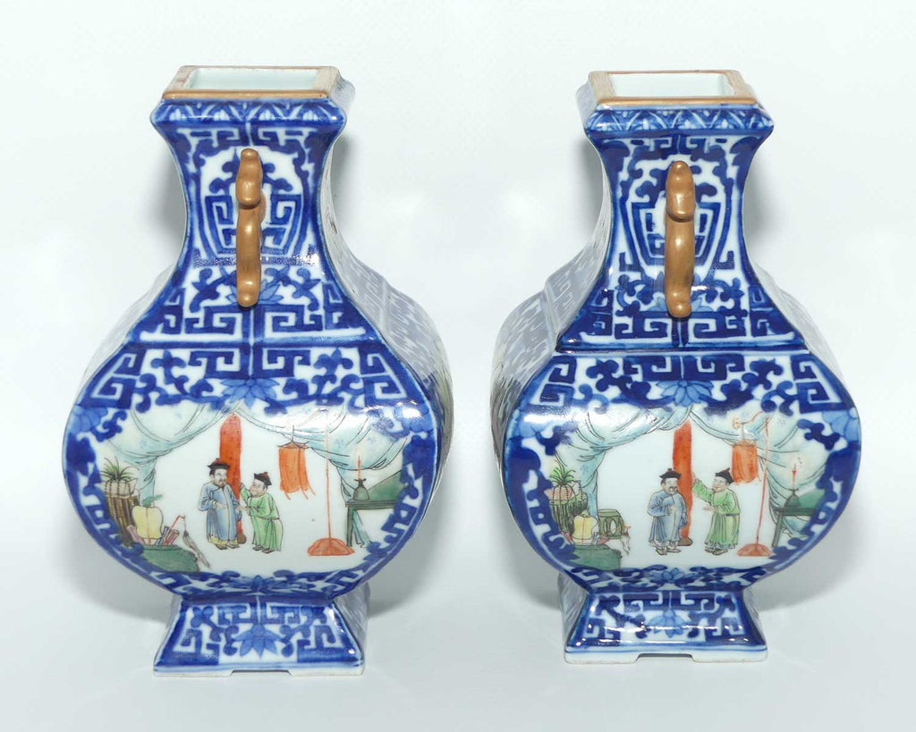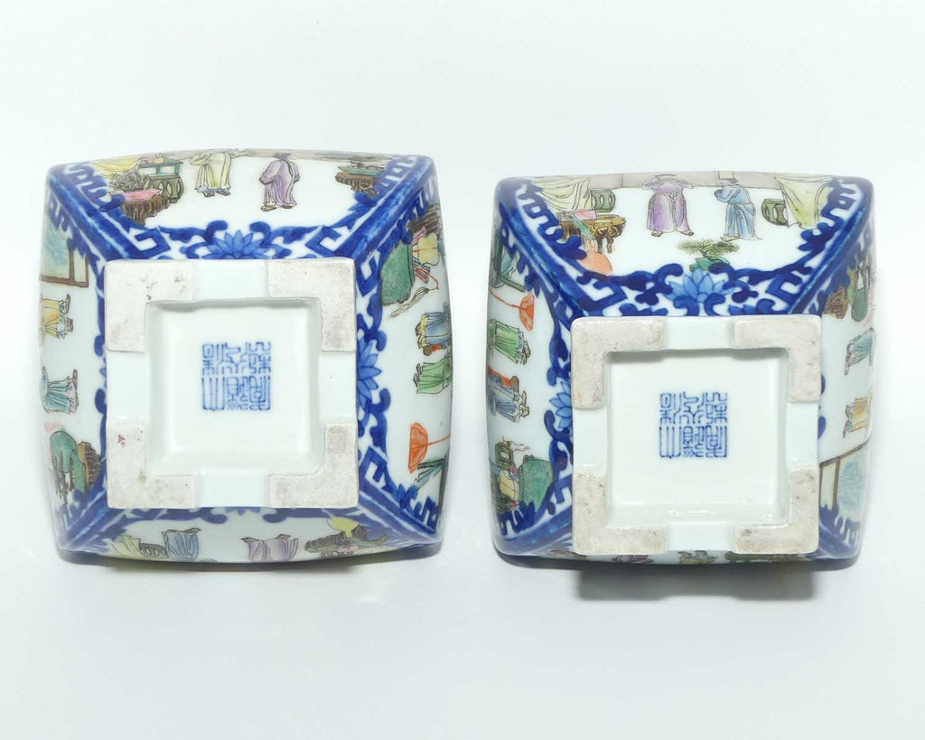 Pair of Chinese Qing Style Square vases that rest on 4 feet
