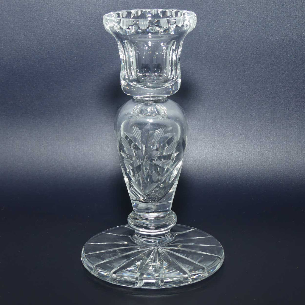 This pair of candlesticks features a finely cut floral design on each column, and the rims are facetted and cut to give a touch of finishing class