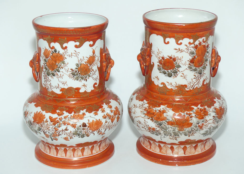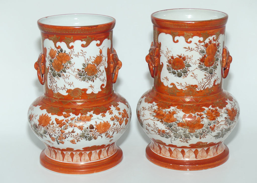 A superbly decorated genuine matched pair of wider body vases, with well moulded figural handles