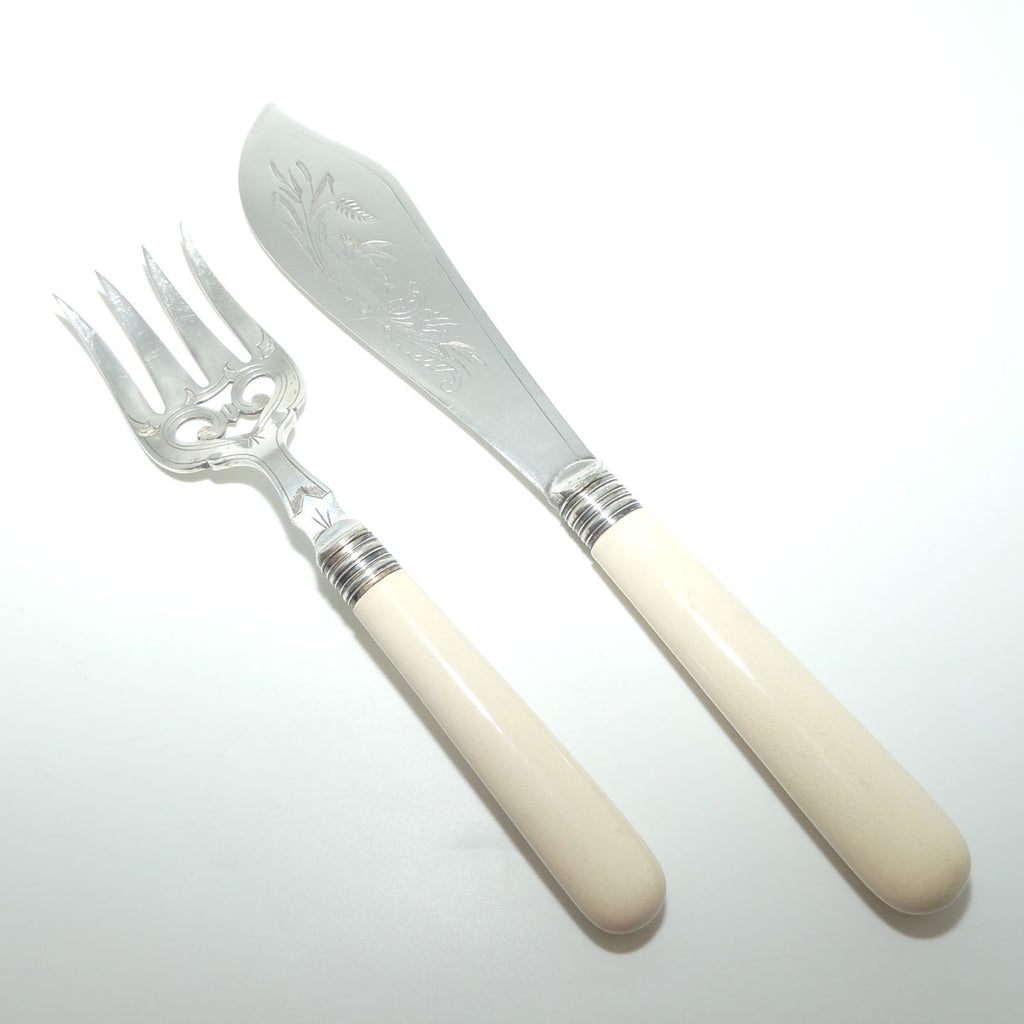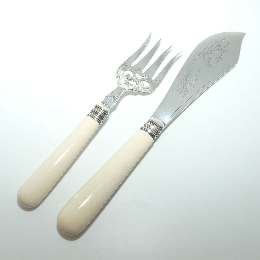A beautiful Edwardian era pair c.1900, with a Bright Cut style of engraving and Porcelain handles [the Porcelain is to simulate Bone]