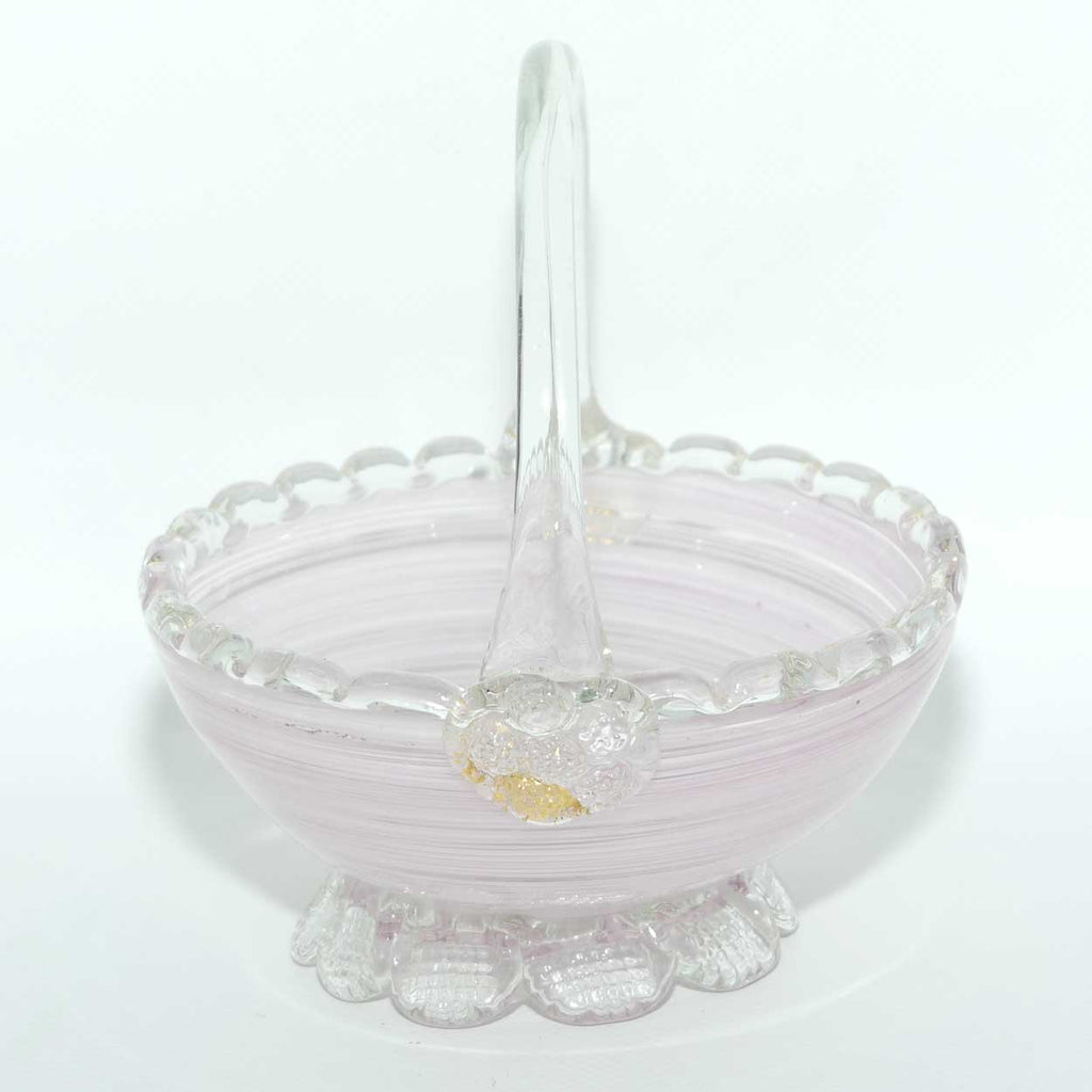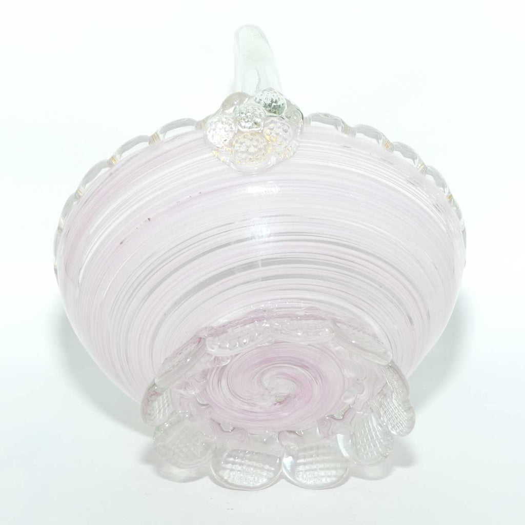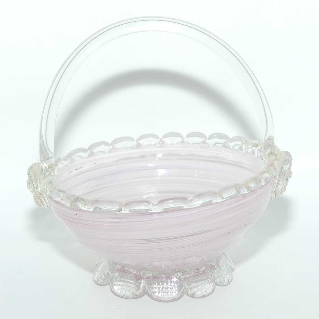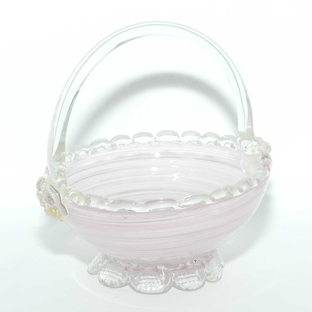 Pink Swirl Murano glass basket with crimped feet and applied handle