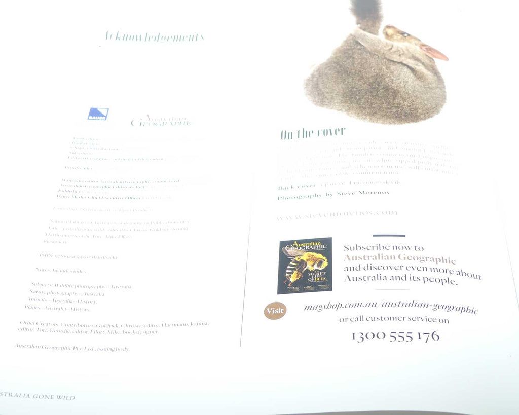 Description: 224 pages. Book appears to have hardly been read and is in Fine condition throughout. For more than 30 years, Australian Geographic has been showcasing Australia's unique natural history through the words and images of the nation's finest writers and photographers. This 224-page hard cover compendium brings together over 40 of the best stories spanning the natural world from the smallest of invertebrates to the creatures that inhabit the waters that surround us to the largest of our marsupial mammals. Illustrated with hundreds of stunning Australian wildlife photos, this beautiful book will covers the stories of our unique Australian mammals and ecosystems, stories of loss and survival of various amazing species (such as the Tasmanian tiger, the kakapo, the night parrot and the Lord Howe Island phasmid), and tackle harder topics around introduced and feral species, as well as profile our bountiful oceans, and highlight different bird, reptile and inverterbrate species.