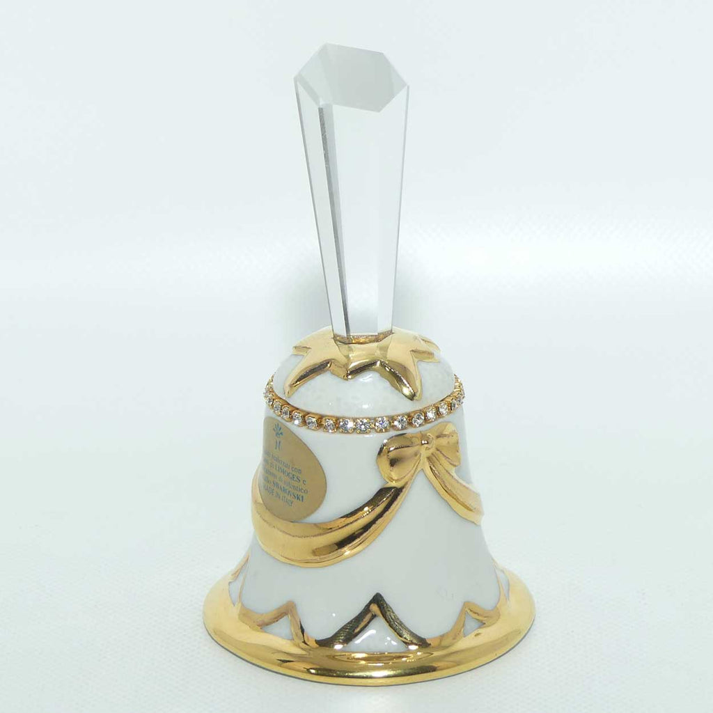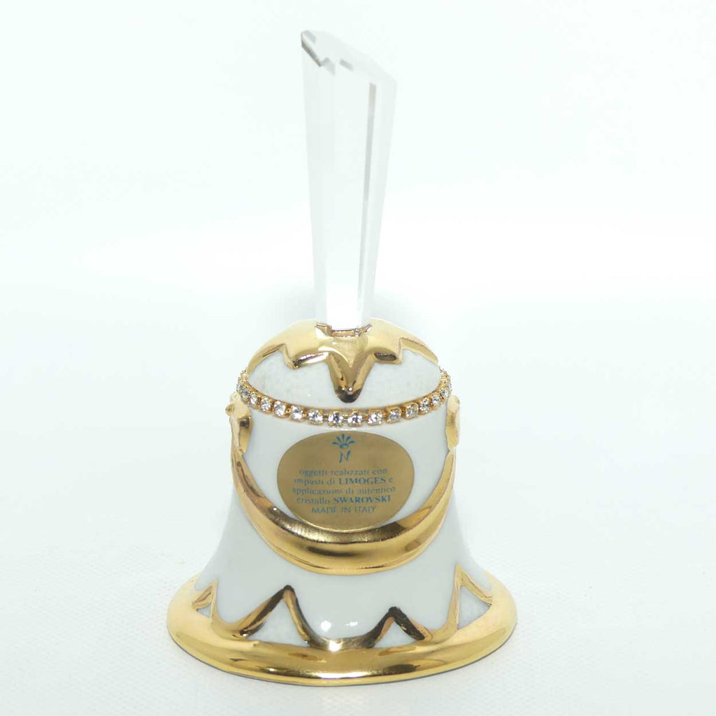 Adhesive Gilt label says oggetti realizzati con impasto di LIMOGES c applicazioni di autentico cristallo swarovski - which translated means objects made with Limoges clay and applications of authentic Swarovski crystal