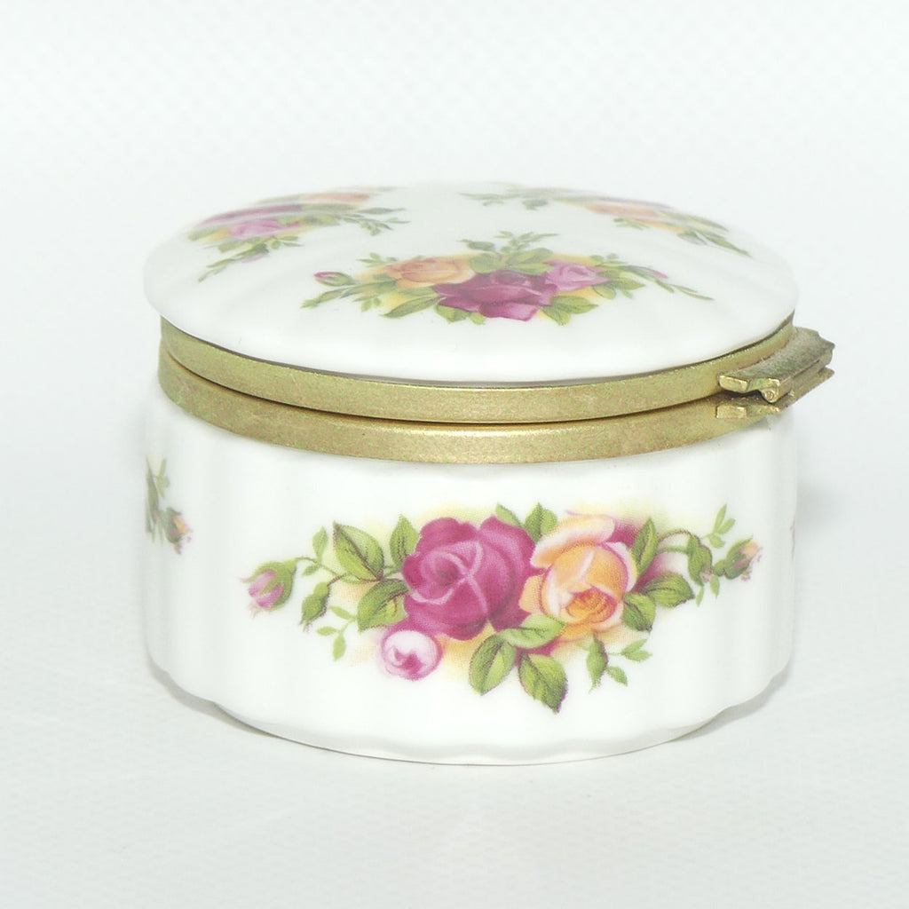 Trinket box with brassed metal hinge