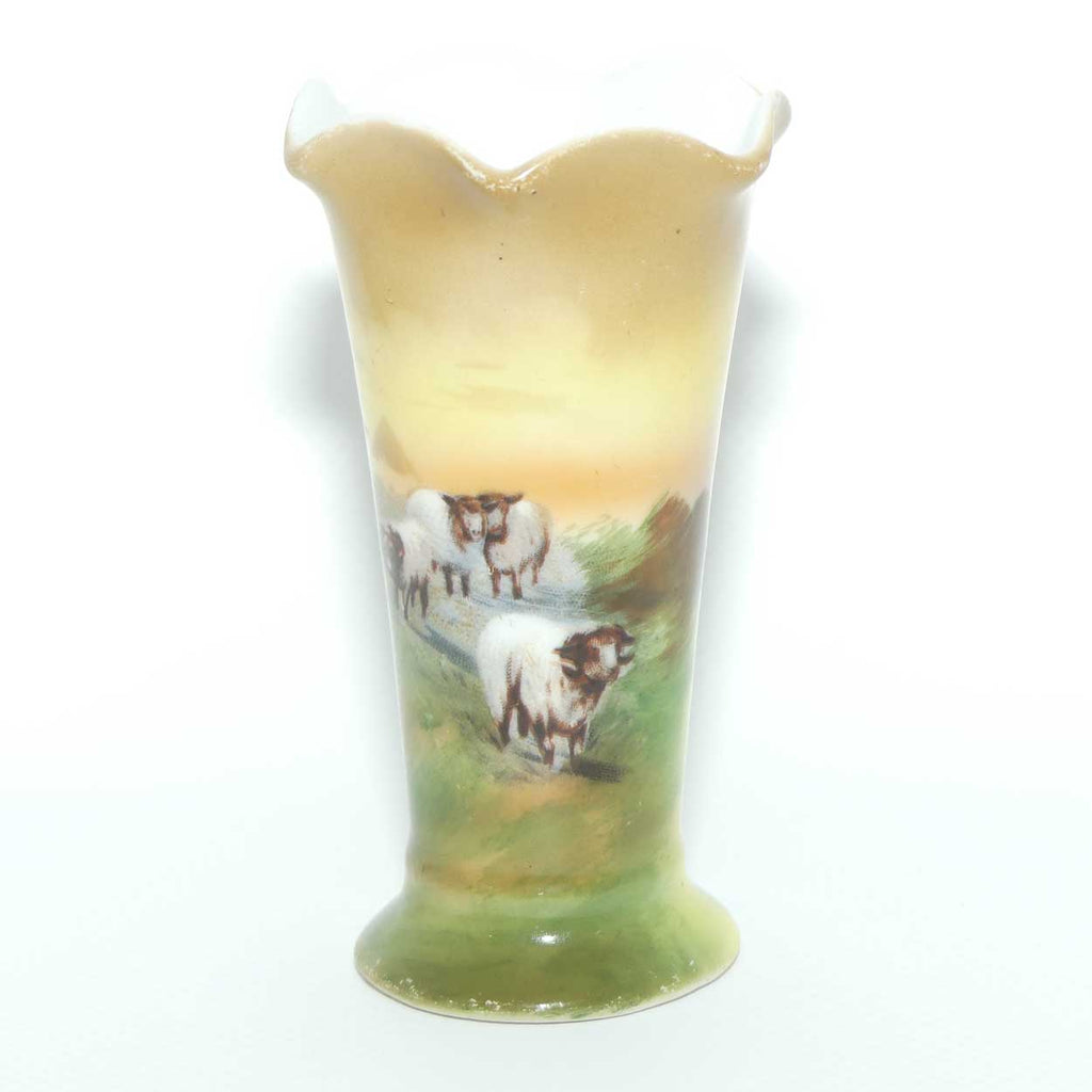 Royal Bayreuth Bavaria fluted rim vase with Highland Sheep scene