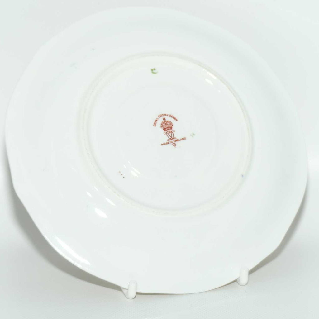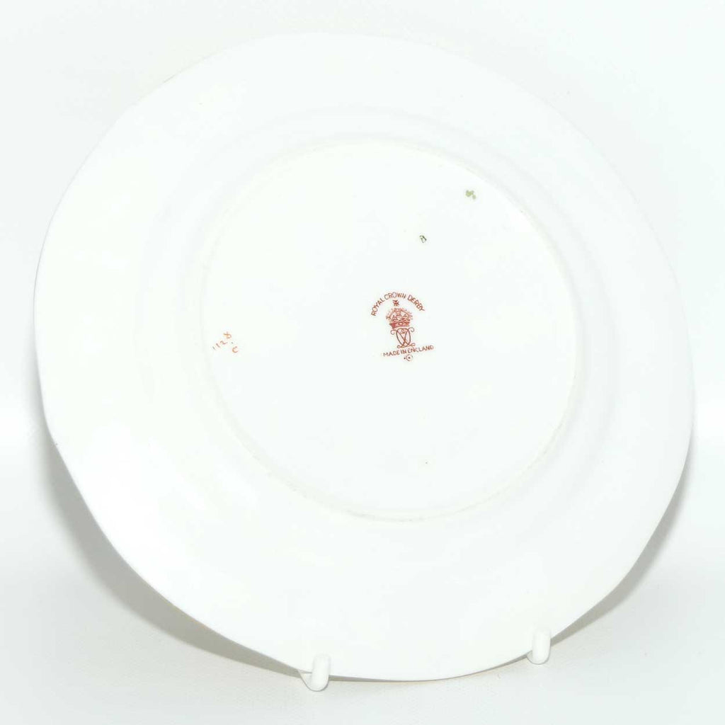 Each piece matches perfectly as you would expect from Royal Crown Derby. The year cyphers on the items are from the same period, the cup from 1929, the saucer 1928 and the plate 1929. This is quite easily explained as the items would have been taken from a supply stockpile to fill an order
