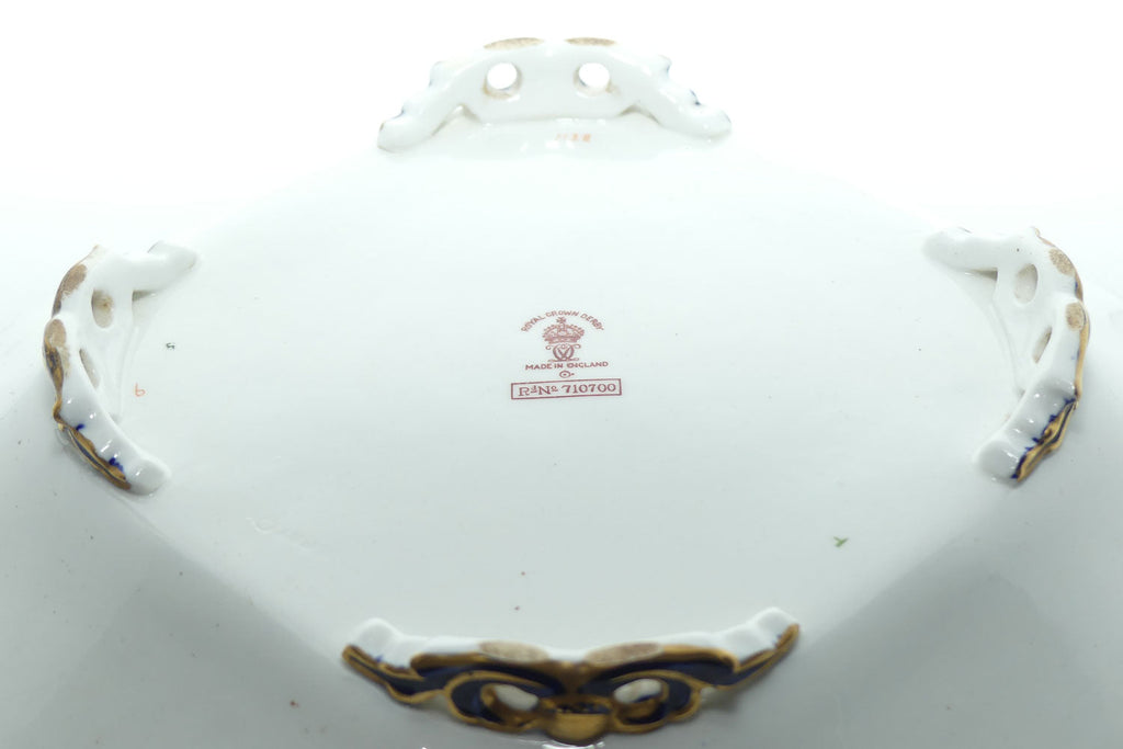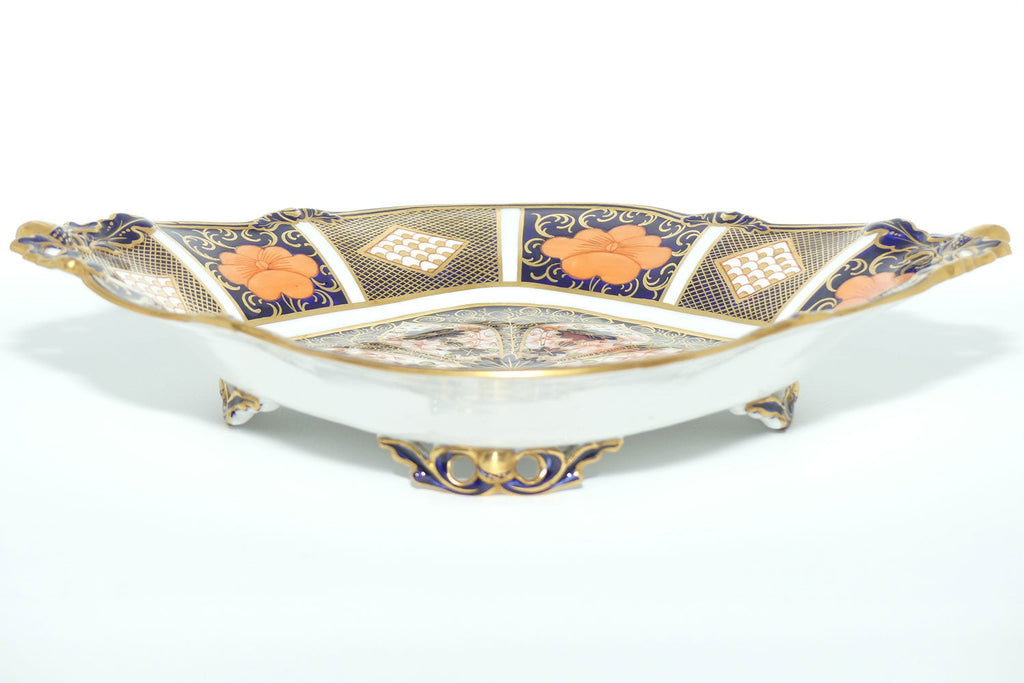 Royal Crown Derby Old Imari 1128 diamond shape acorn handled dish with tiny feet