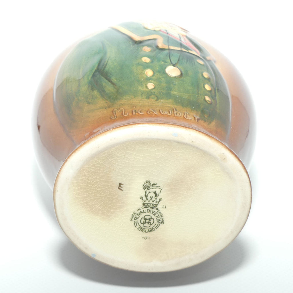 Royal Doulton Aerographed Brown Dickens Mr Micawber flask + DEWARS WHISKY Stopper