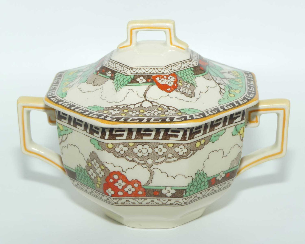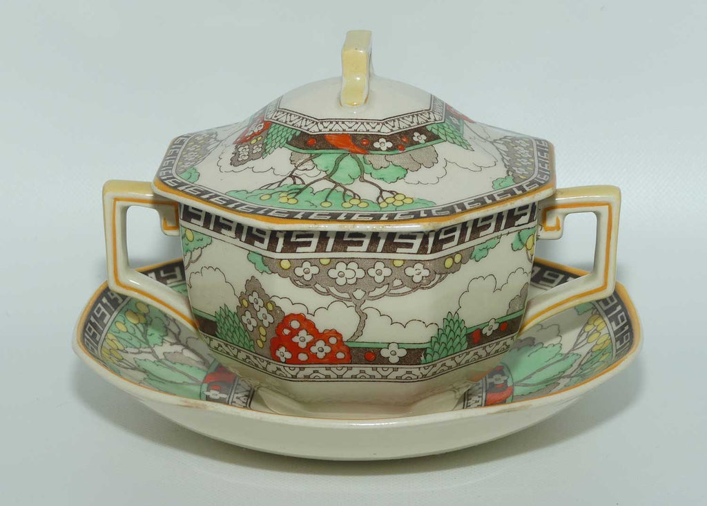 Royal Doulton Art Deco octagonal covered pot and underplate D5805