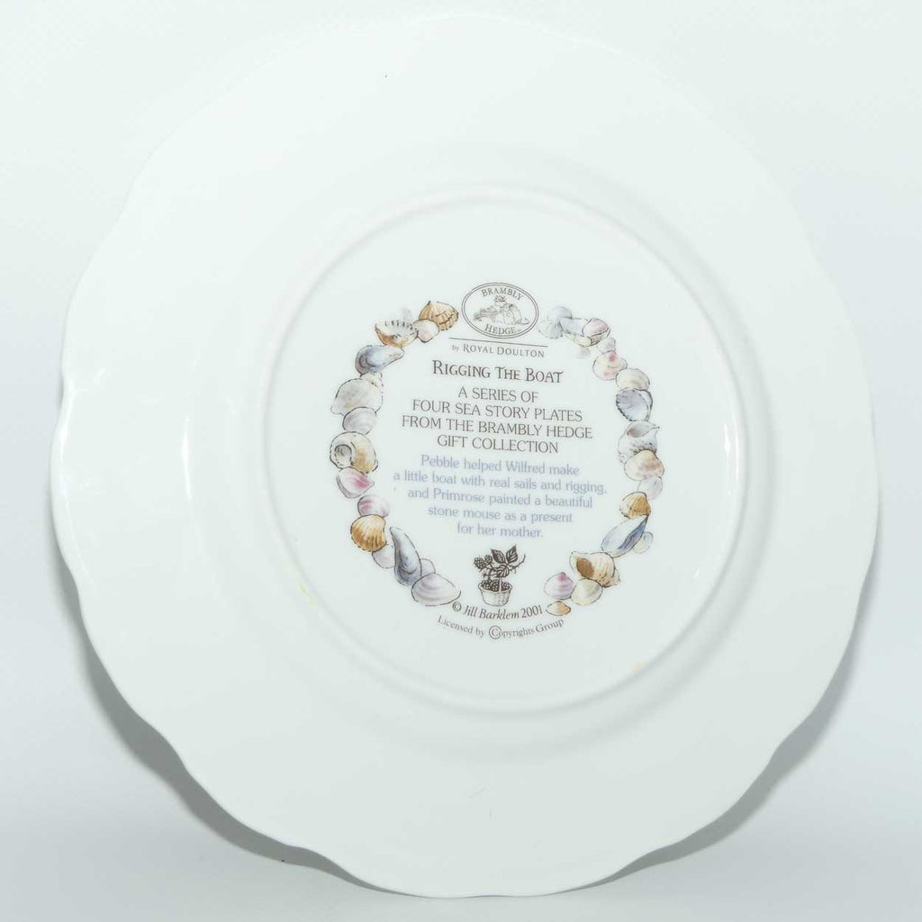 On the rear of the plate reads: Rigging the Boat | A series of Four Sea Story Plates from the Brambly Hedge Gift Collection