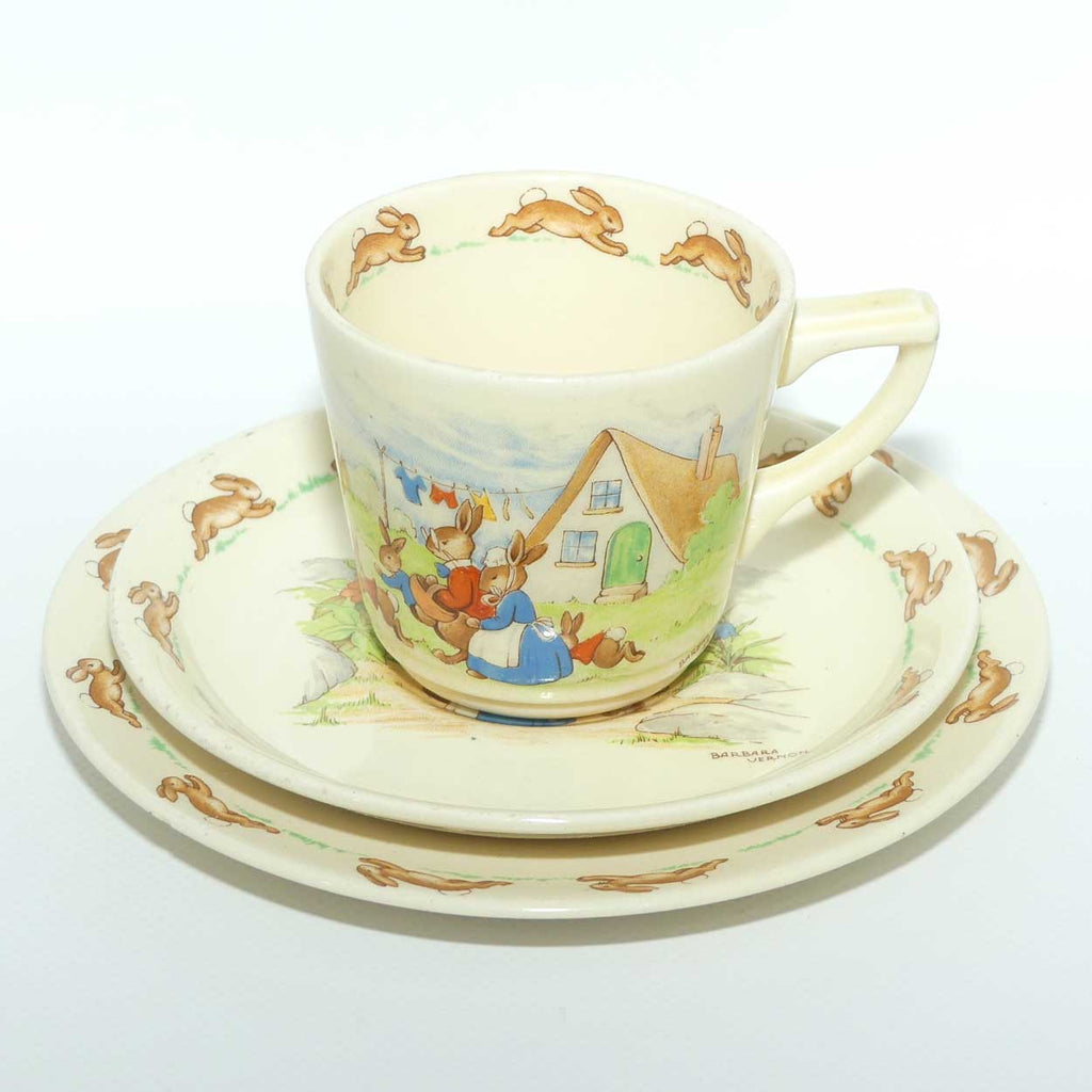 There is a little wear to the tea plate Convalescing scene, however overall to get a trio where each piece is signed Barbara Vernon and still remaining intact and damage free is a rarity these days