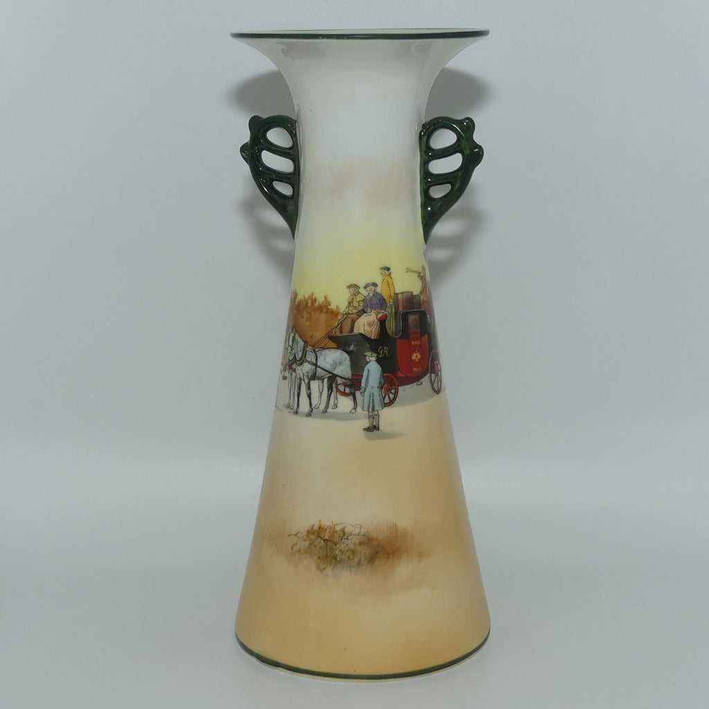 Royal Doulton Coaching Days tall flared mouth twin fancy handle vase E3804